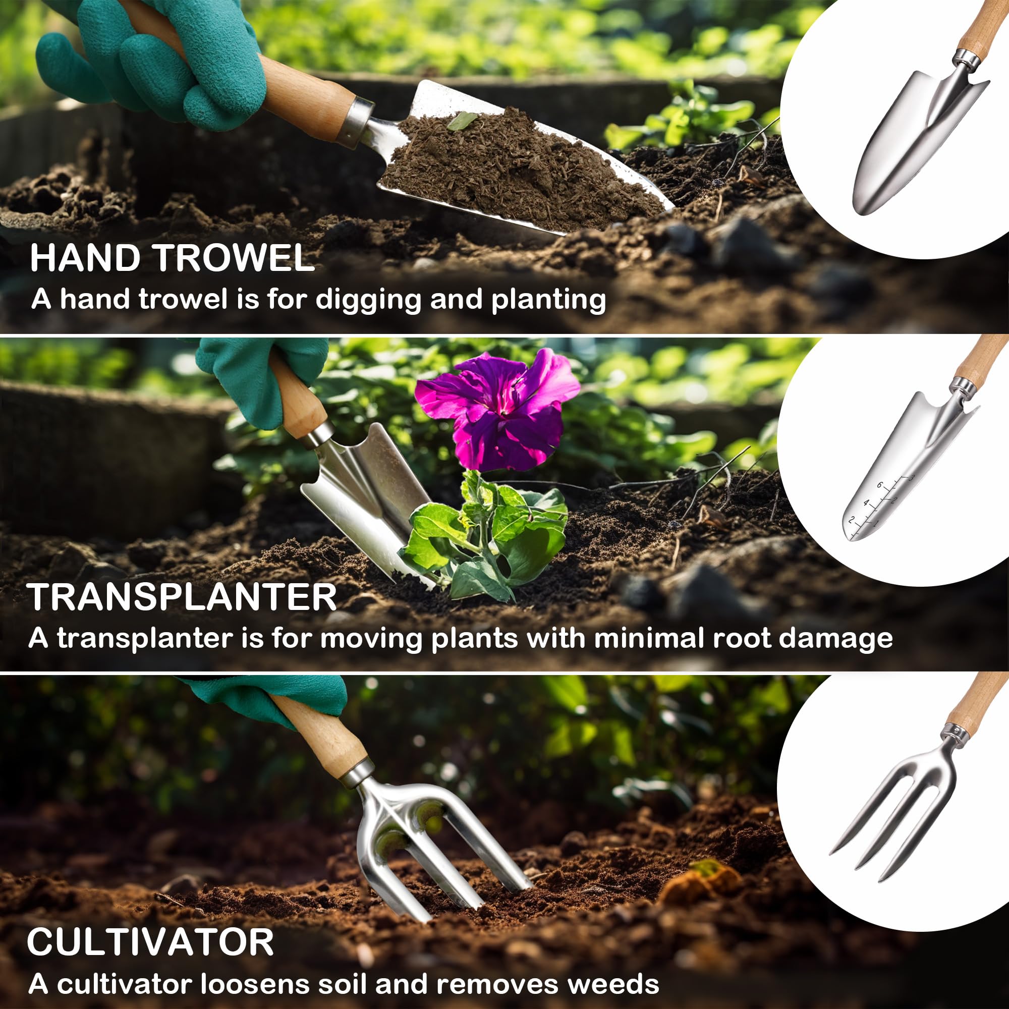 12-Piece Heavy Duty Stainless Steel Gardening Tools Kit with Storage Organizer Handbag & Tool Apron - All-in-One Premium Garden Gift Set for Women/Men