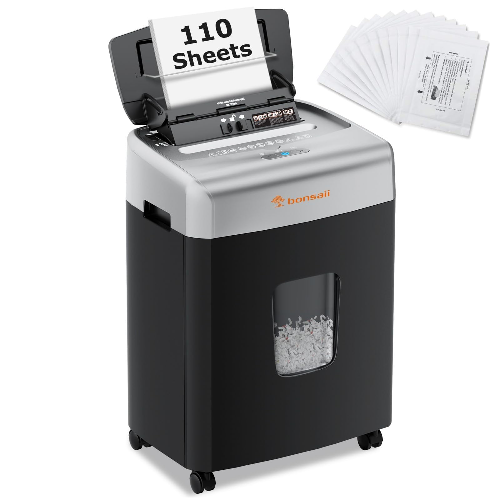 • Auto & Manual Shredding: 110 sheets automatic shredding (Shredded paper only), and 12 sheets manual shredding capacity (can shred mail, cards, and staples).