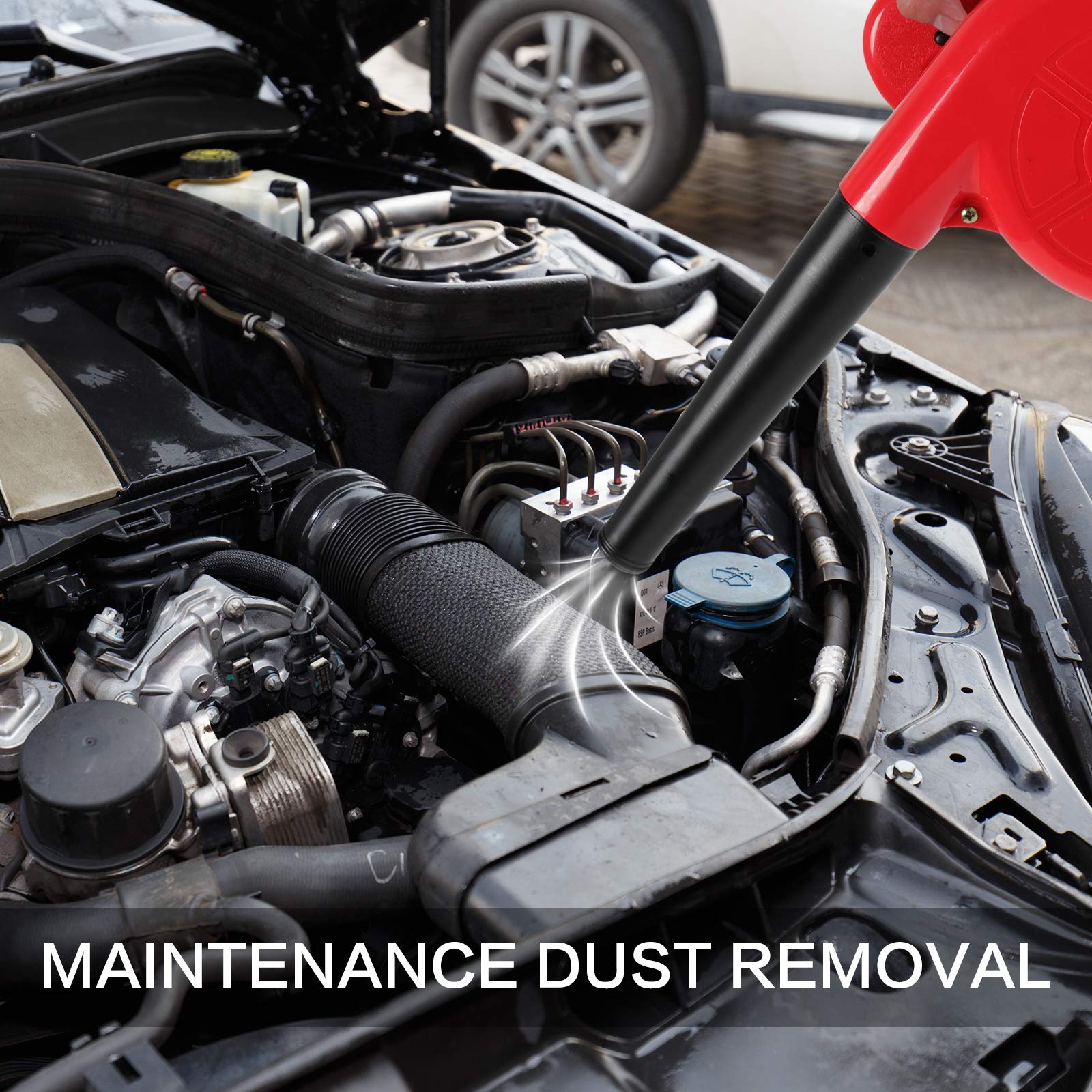 - MULTIFUNCTIONAL- This handy blower and vacuum is perfect for dedusting in small areas, like picking up hairy stuff around furnitures, removing dust in computer case, automobile engine and wall corners, or blowing away leaf mulches/dirt/grass/pebbles/debris from balcony, porch, patio, driveway and deck