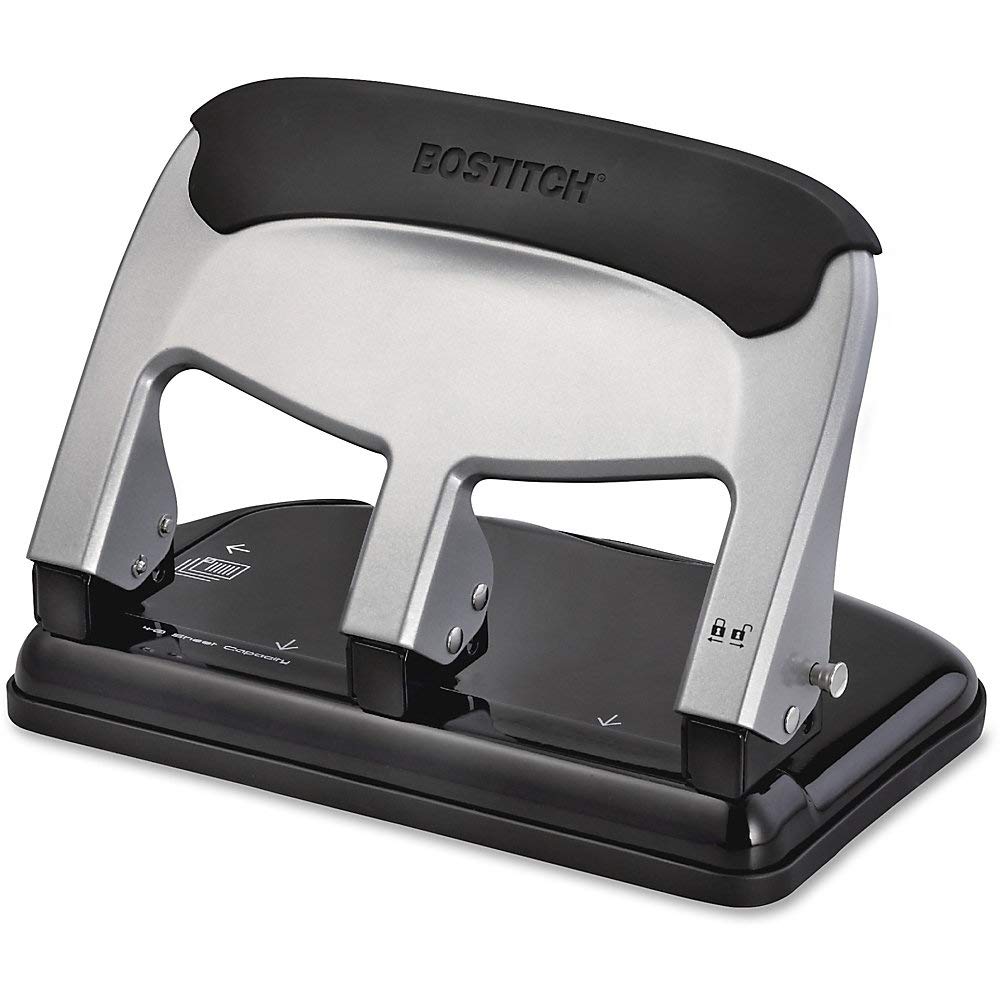 Details: The Bostitch Office bundle includes two essential office tools - a heavy duty 3-hole punch and an electric pencil sharpener. The punch features EZ Squeeze technology that requires 50% less effort to punch through stacks of up to 40 sheets of paper. Its all-metal design and wide handle provide durability and comfort. The integrated paper guide ensures consistent 3-hole placement. A chip tray and rubber base keep your workspace tidy. The electric sharpener has a powerful motor designed to operate without stalling. Its compact size is perfect for small home offices. Safety features include an interlock switch that prevents operation when the shavings tray is removed. The large capacity tray needs less frequent emptying. Hardened steel cutters sharpen pencils precisely and last up to 4 times longer than average. With robust construction and safety focused designs, this bundle brings together two devices that will boost productivity and organization in your home or office. The punch and sharpener complement each other as essentials for any workspace where you handle paper documents and writing instruments.