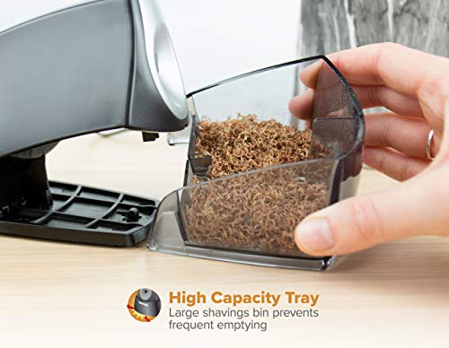 - Giant Shavings Tray – You won’t have to clean out your shavings tray often as it has a high capacity and can handle lots of pencil shavings