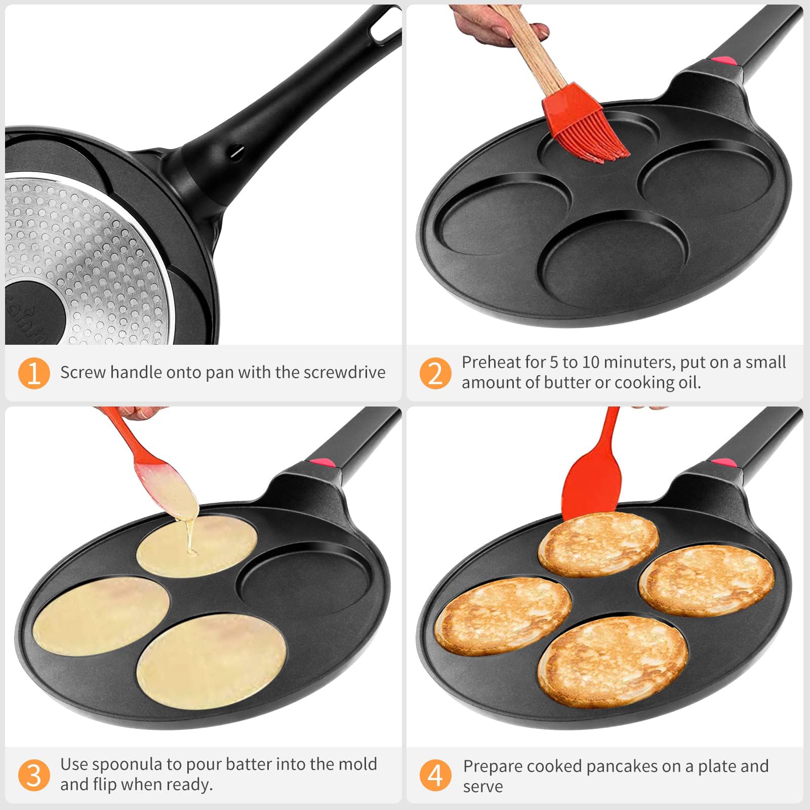 - Heats Quickly & Evenly – Made of sturdiness die cast aluminum, durability and light weight. 3 - layer thickened pot bottom evenly heated ensures maximum heat transfer for fast, not leave dark spots on your mini pancakes / omelets.