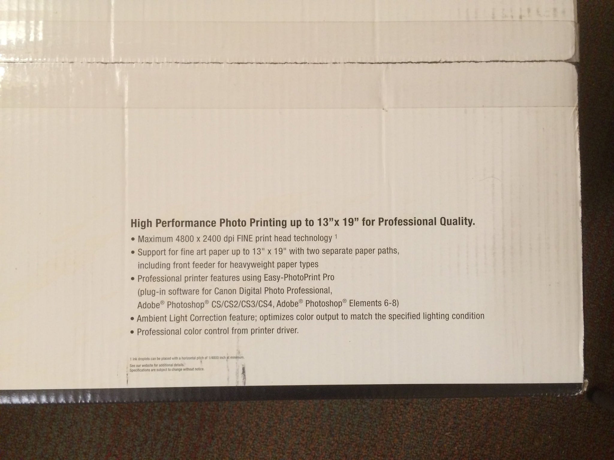 Canon Pro9000 MarkII Inkjet Photo Printer <!-- /* Font Definitions */ @font-face {font-family:"Cambria Math"; panose-1:2 4 5 3 5 4 6 3 2 4; mso-font-alt:"Calisto MT"; mso-font-charset:0; mso-generic-font-family:roman; mso-font-pitch:variable; mso-font-signature:-1610611985 1107304683 0 0 159 0;} @font-face {font-family:Calibri; panose-1:2 15 5 2 2 2 4 3 2 4; mso-font-alt:"Arial Rounded MT Bold"; mso-font-charset:0; mso-generic-font-family:swiss; mso-font-pitch:variable; mso-font-signature:-1610611985 1073750139 0 0 159 0;} /* Style Definitions */ p.MsoNormal, li.MsoNormal, div.MsoNormal {mso-style-unhide:no; mso-style-qformat:yes; mso-style-parent:""; margin:0in; margin-bottom:.0001pt; mso-pagination:widow-orphan; font-size:12.0pt; font-family:"Times New Roman","serif"; mso-fareast-font-family:Calibri; mso-fareast-theme-font:minor-latin;} .MsoChpDefault {mso-style-type:export-only; mso-default-props:yes; mso-ascii-font-family:Calibri; mso-ascii-theme-font:minor-latin; mso-fareast-font-family:Calibri; mso-fareast-theme-font:minor-latin; mso-hansi-font-family:Calibri; mso-hansi-theme-font:minor-latin; mso-bidi-font-family:"Times New Roman"; mso-bidi-theme-font:minor-bidi;} @page Section1 {size:8.5in 11.0in; margin:1.0in 1.0in 1.0in 1.0in; mso-header-margin:.5in; mso-footer-margin:.5in; mso-paper-source:0;} div.Section1 {page:Section1;} --> 4800 x 1200 maximum color dpi thanks to Canon Full-photolithography Inkjet Nozzle Engineering (FINE) <!-- /* Font Definitions */ @font-face {font-family:"Cambria Math"; panose-1:2 4 5 3 5 4 6 3 2 4; mso-font-alt:"Calisto MT"; mso-font-charset:0; mso-generic-font-family:roman; mso-font-pitch:variable; mso-font-signature:-1610611985 1107304683 0 0 159 0;} @font-face {font-family:Calibri; panose-1:2 15 5 2 2 2 4 3 2 4; mso-font-alt:"Arial Rounded MT Bold"; mso-font-charset:0; mso-generic-font-family:swiss; mso-font-pitch:variable; mso-font-signature:-1610611985 1073750139 0 0 159 0;} /* Style Definitions */ p.MsoNormal, li.MsoNormal, div.MsoNormal {mso-style-unhide:no; mso-style-qformat:yes; mso-style-parent:""; margin:0in; margin-bottom:.0001pt; mso-pagination:widow-orphan; font-size:12.0pt; font-family:"Times New Roman","serif"; mso-fareast-font-family:Calibri; mso-fareast-theme-font:minor-latin;} .MsoChpDefault {mso-style-type:export-only; mso-default-props:yes; mso-ascii-font-family:Calibri; mso-ascii-theme-font:minor-latin; mso-fareast-font-family:Calibri; mso-fareast-theme-font:minor-latin; mso-hansi-font-family:Calibri; mso-hansi-theme-font:minor-latin; mso-bidi-font-family:"Times New Roman"; mso-bidi-theme-font:minor-bidi;} @page Section1 {size:8.5in 11.0in; margin:1.0in 1.0in 1.0in 1.0in; mso-header-margin:.5in; mso-footer-margin:.5in; mso-paper-source:0;} div.Section1 {page:Section1;} --> Ambient Light Correction optimizes color output to match the specified lighting condition of the room you're admiring your photos in.