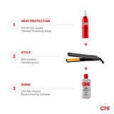 Say goodbye to frizzy hair with the CHI Original Ceramic Flat Iron. This reliable flat iron is the key to achieving a flawless, smooth finish every time. Its ceramic floating plates ensure even heat distribution for stunning results. With a quick heat up feature and an analog on/off switch, you can easily control the temperature to suit your hair type. Invest in the 1" iron black design for professional styling from the comfort of your own home.