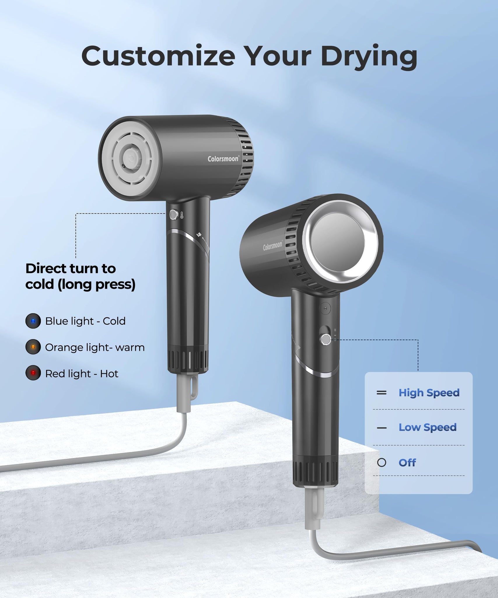 Experience professional-level results from the comfort of your own home with our Hair Dryer featuring cutting-edge technology. The powerful 100,000 RPM High-Speed Brushless Motor emits negative ions for faster drying times, while the compact design makes it perfect for on-the-go touch-ups. The low noise operation allows for a relaxing styling experience, while the included diffuser and nozzle guarantee salon-worthy results without the heat damage. Treat yourself or a friend to the gift of luxurious hair care with this travel-friendly Hair Dryer.