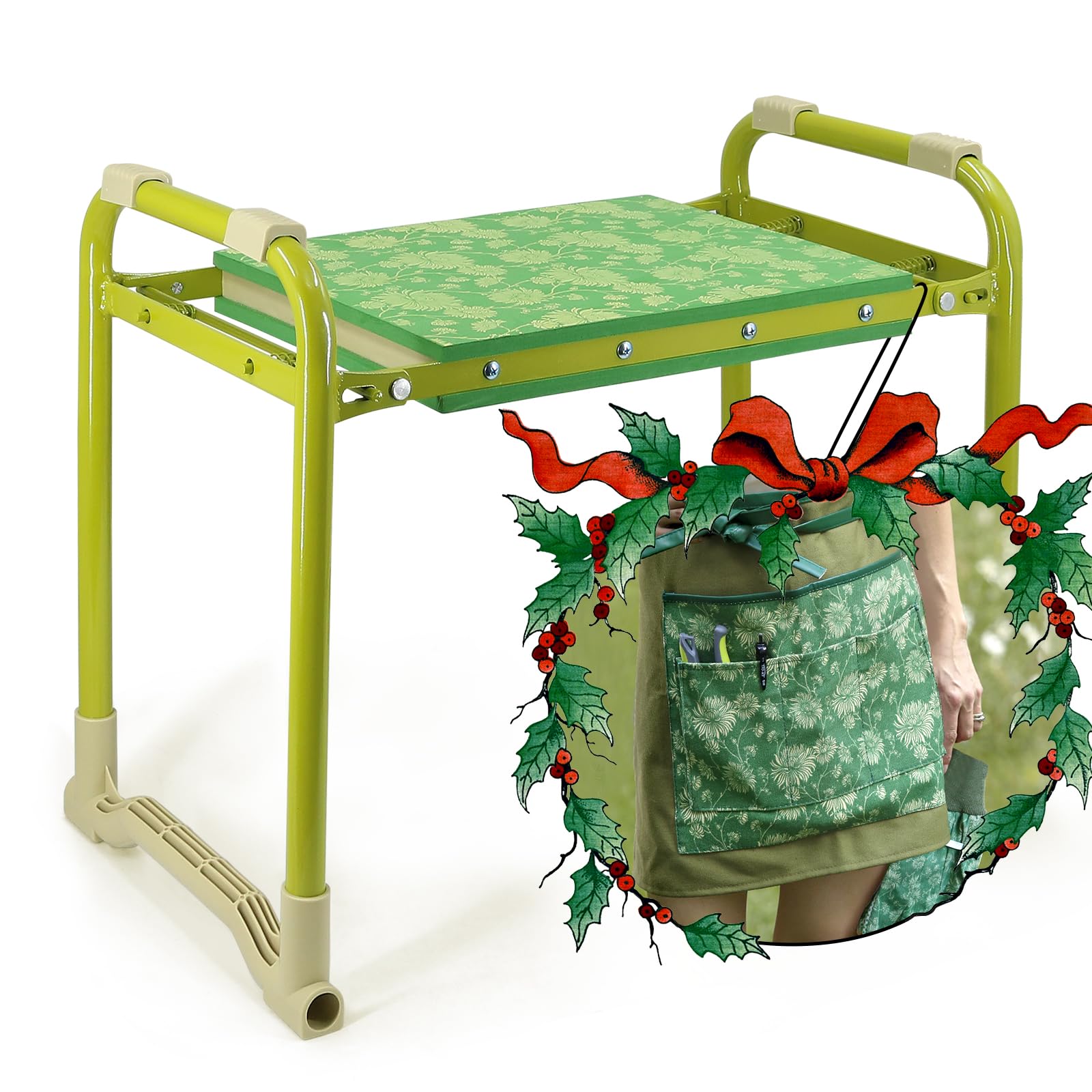 - HELLO! GIFT HUNTERS! -- this garden bench for kneeling and sitting set is READY FOR GIFT GIVING. Exquisite quality, well made items, lovely packaging box, functional yet elegant, this garden stool and kneeler set is what every gardener needs. It’s an ideal gardening gifts for sensors, women men, mom, grandma. As a gardening gift for Christmas, birthday, housewarming, a welcoming of Spring, etc. Come with: a garden seat and kneeler & a half apron.
