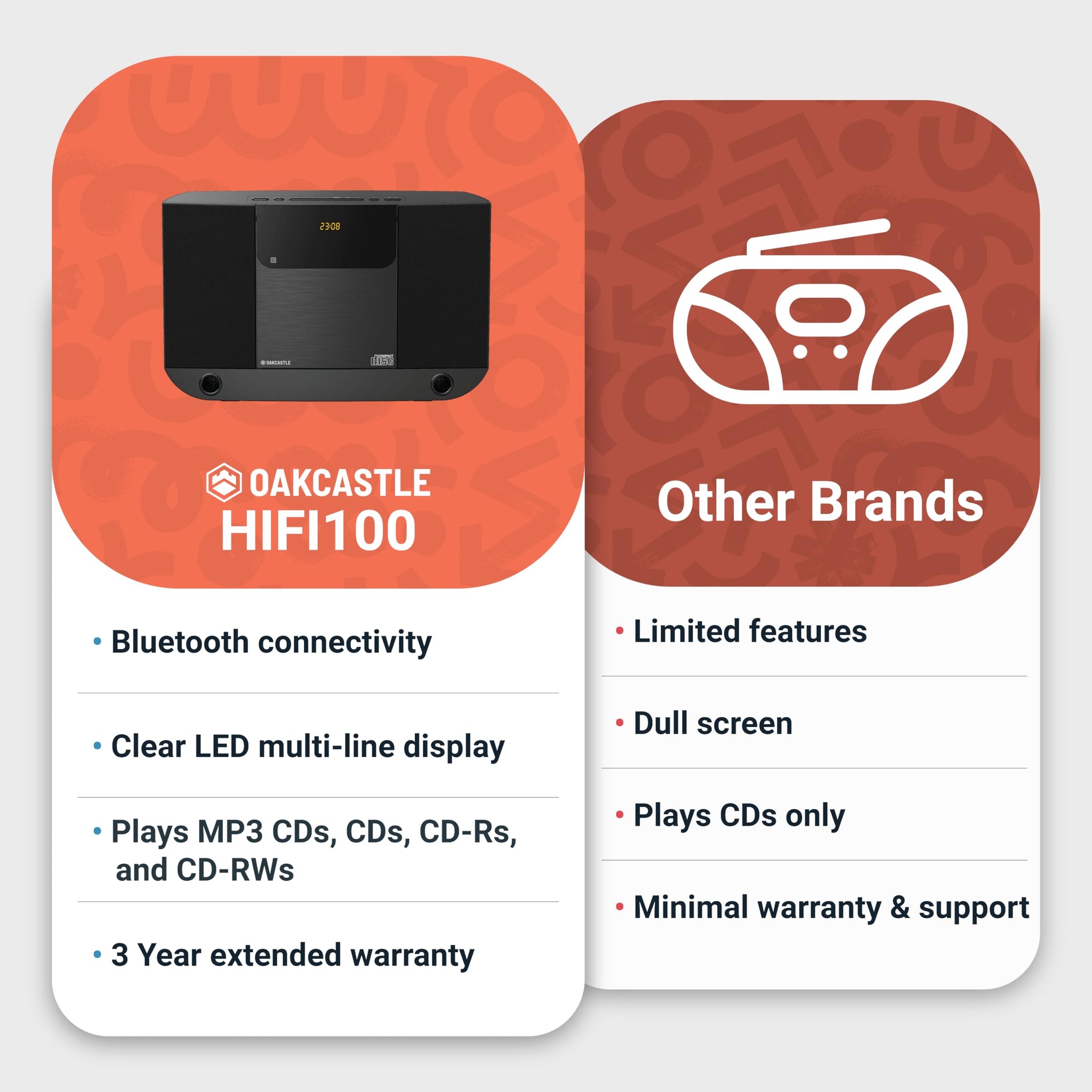 - 𝗪𝗛𝗔𝗧'𝗦 𝗜𝗡 𝗧𝗛𝗘 𝗕𝗢𝗫: This package contains 1x Oakcastle Hifi100, 1x remote control, 1x power adapter and an easy-to-read user guide. Product Dimensions: 2.76 x 13.78 x 8.27 inches; 4.30 pounds.