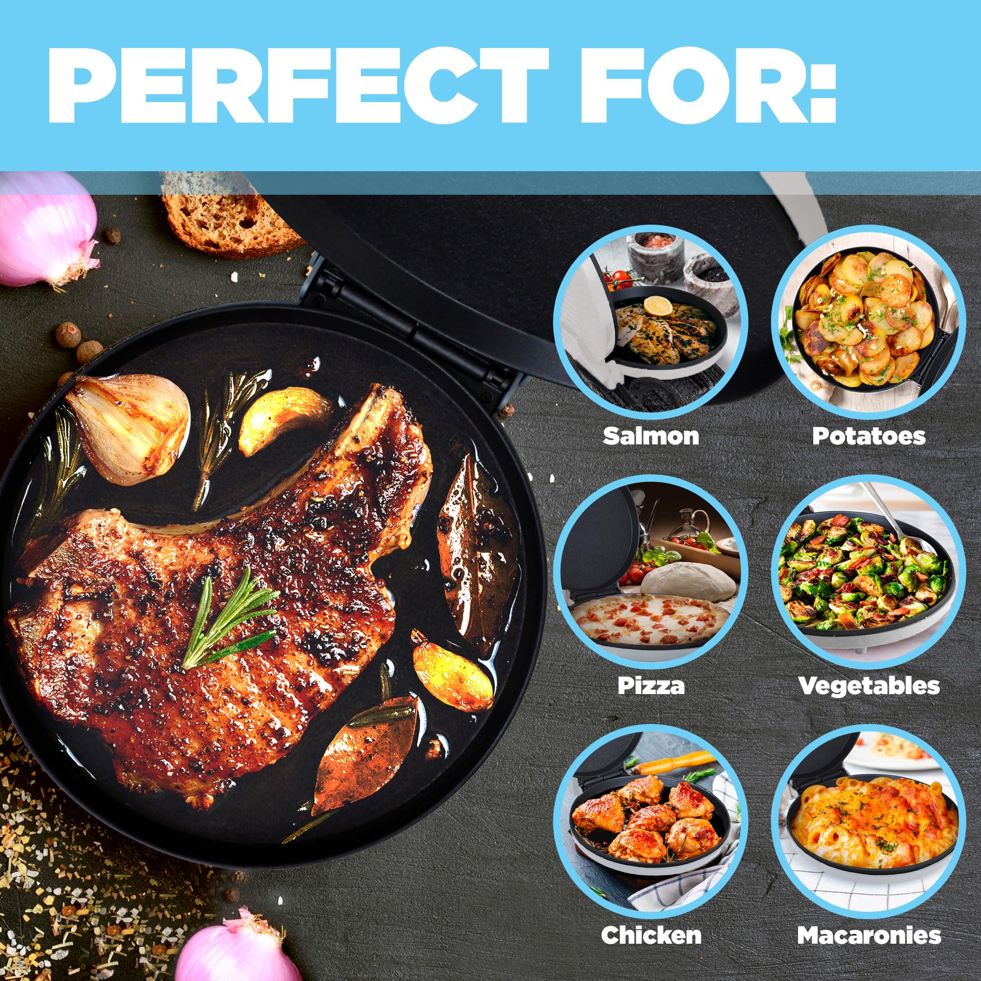 - FRESH OR REHEAT: Bake or Reheat perfect fresh Pizzas with that crispy crust, Chicken Cutlets, Meat, or any sort of Snacks, Quesadillas, Nachos, Mini Frittatas, Quiche, Croissants, Giant Cookies, or JUST ABOUT ANYTHING!