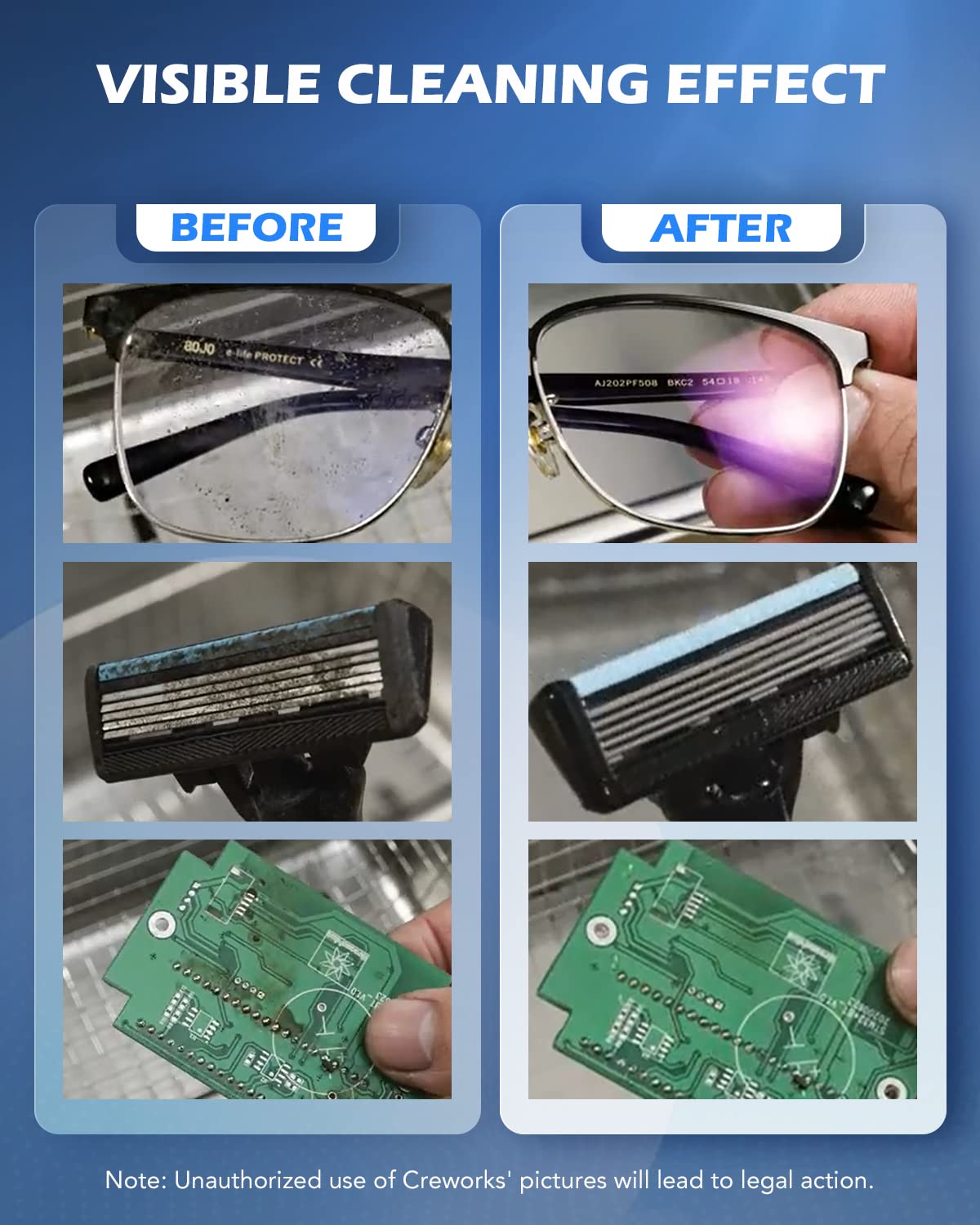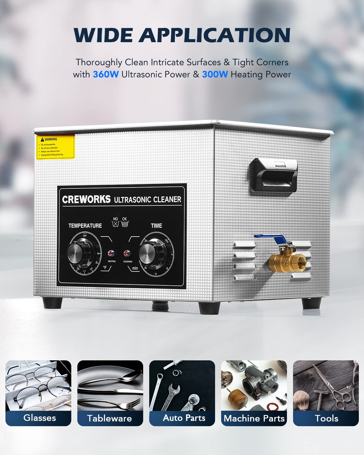 The CREWORKS 15L Ultrasonic Cleaner with Knob is a top-of-the-line professional industrial auto cleaning machine designed specifically for carburetor repairing tools parts and instruments. With a powerful 760W motor and advanced 40kHz digital sonic cavitation technology, this cleaner delivers exceptional results every time. Plus, the built-in heater ensures your items are cleaned thoroughly and efficiently. Upgrade to the CREWORKS Ultrasonic Cleaner for a superior cleaning experience.