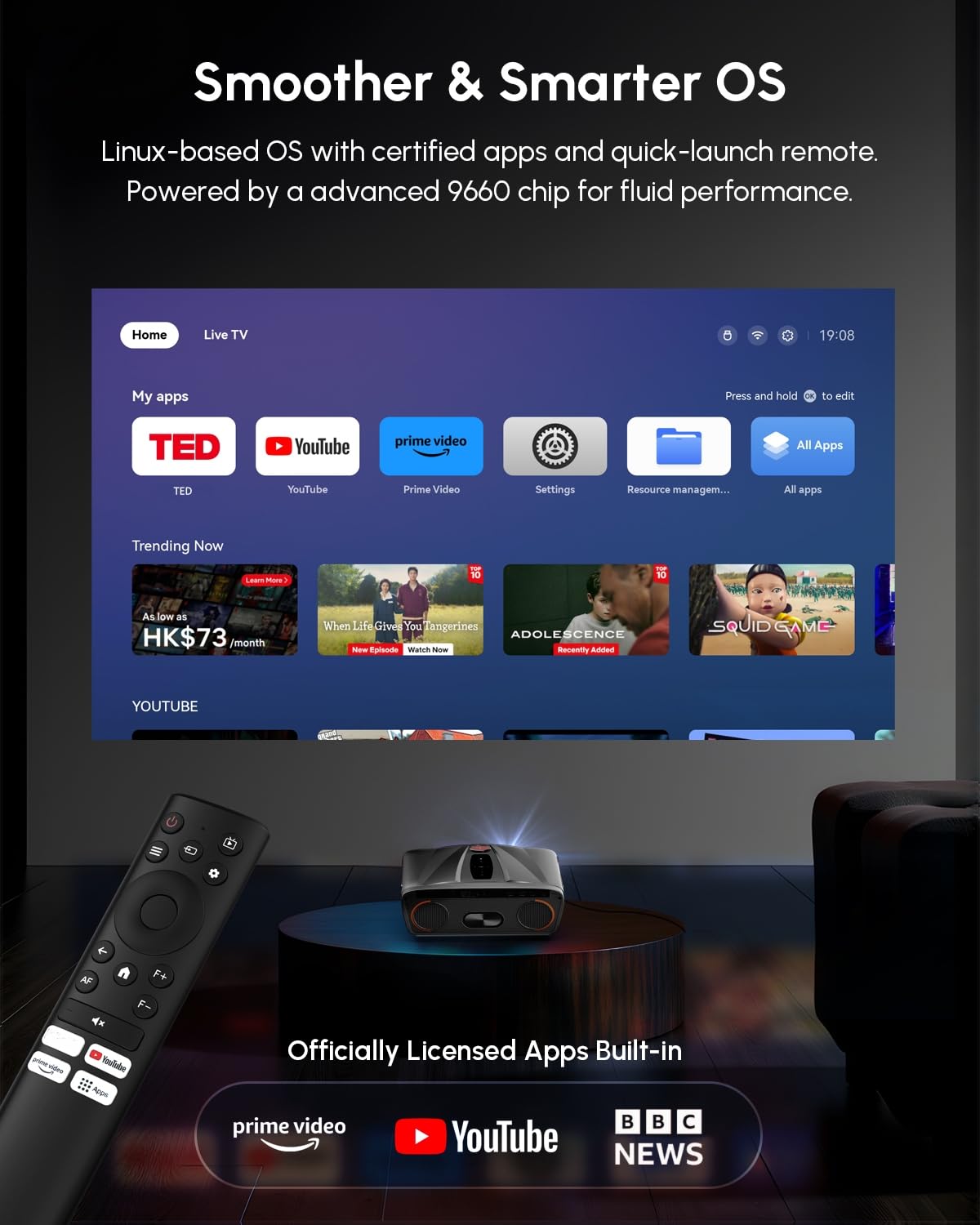 • [Smart MOVIN 2.0 Ecosystem & Future-Proof Connectivity Hub] Stream seamlessly with the Linux-based AI MOVIN 2.0 smart system, offering full access to your favourite official licensed apps like YouTube,Prime Video,Hulu etc.via the integrated app store. Enjoy stable, fast connections with next-generation WiFi 6 and versatile two-way Bluetooth for connecting speakers,headphones or smartphone for higher level audio experience.
