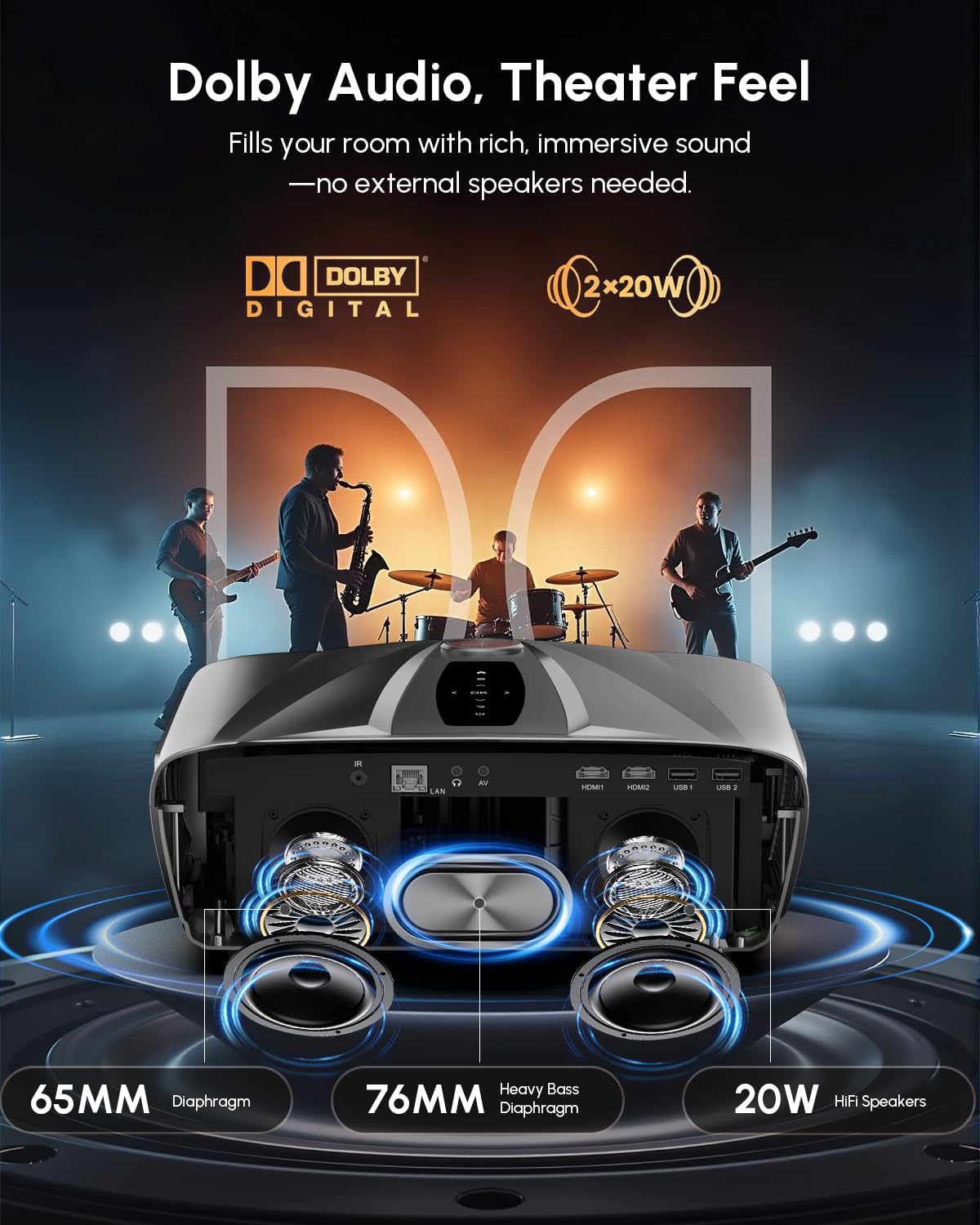 • [Immersive Dolby & DTS Audio with Premium 40W Sound System] The integrated dual 20W speakers, equipped with dedicated bass diaphragms, dual digital audio channels, and dual digital amplifiers, produce powerful, room-filling sound. Enjoy cinematic audio with support for Dolby Digital, Dolby Digital Plus and DTS,ideal for home theatre,football nights and family entertainment.