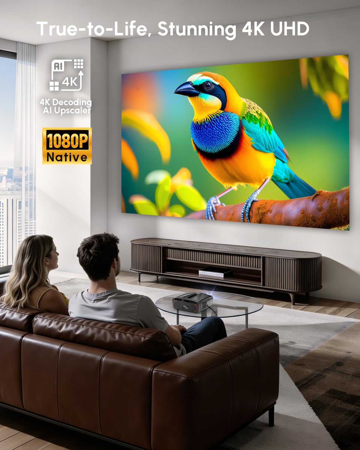 • [Exceptional Brightness for Indoor Daytime Use] Enjoy impressive 2400 ANSI lumens brightness,enhanced by a proprietary sealed light engine, for clear,vibrant viewing even in daylight or well-lit living rooms. Three adaptive brightness modes-Bright,Standard,Quiet- perfectly match your ambient lighting, optimising both picture quality and power usage at any time of day.