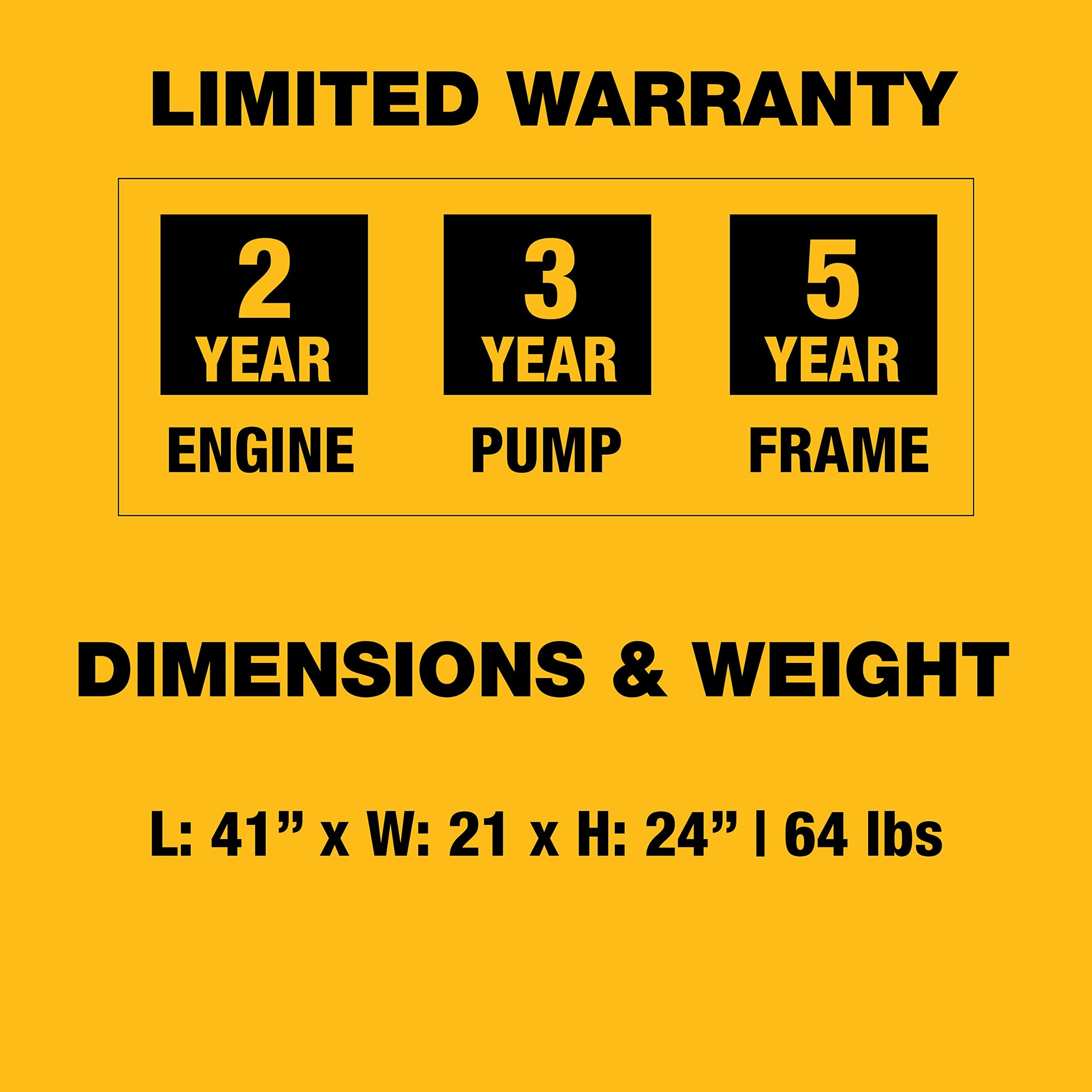 Details: DEWALT pressure washer units and accessories are GUARANTEED TOUGH. Built to meet the rigorous demands of the cleaning professional or anyone who expects the most out their machine. Perfect for deck cleaning, wood restoration, paint preparation, graffiti removal and all other professional cleaning services.