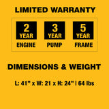 - Power and Durability: A powerful, reliable, maintenance-free OEM Technologies axial cam pump delivers 3300 PSI at 2.4 GPM & includes a thermal relief valve to prevent overheating; Welded steel frame construction with a powder-coated finish adds durability