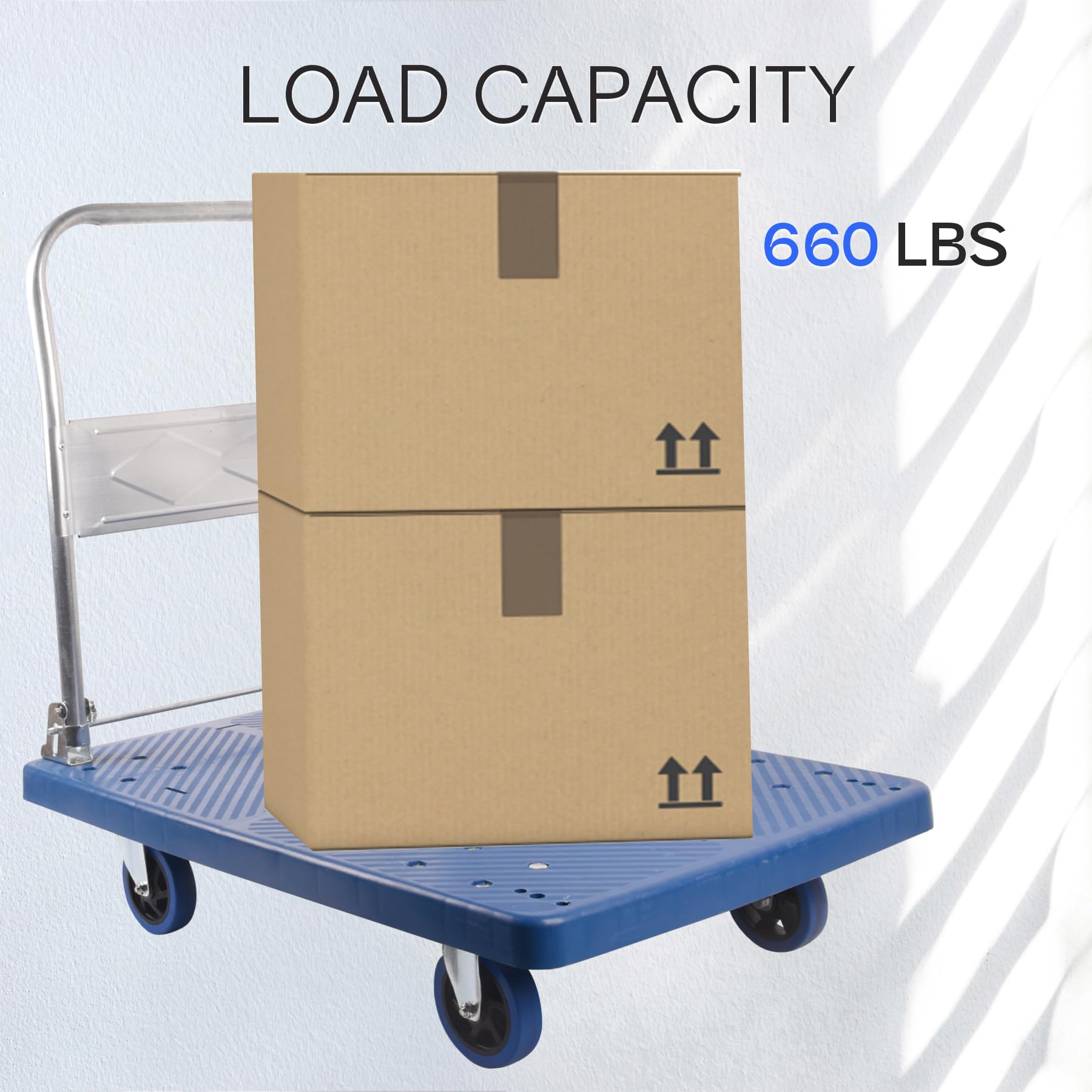 - ANTI-SLIP DESIGN - Anti-skid plate helps prevent cargo from slipping off the cart. Holds up to 660 lbs. Can be used in most scenarios.