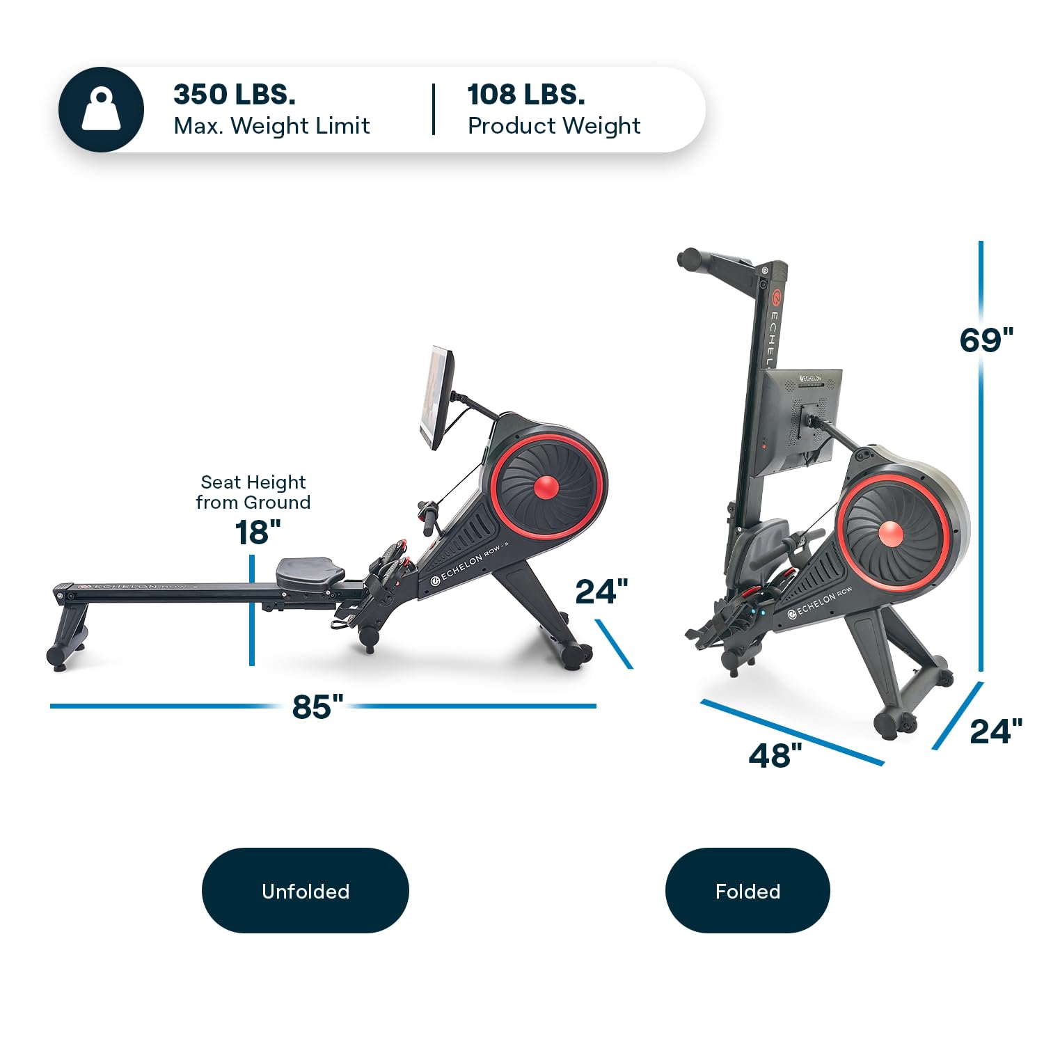 - DESIGN: Enjoy a full-body, low-impact workout with the Echelon Row-s Connected Rowing Machine. Our most advanced rower yet is equipped with a new, 22” rotating HD screen, making it easy to mix-up row workouts; simply flip the screen while taking classes to expand your fitness routines. The screen's crystal-clear resolution makes it easy to get lost when rowing while Wi-Fi-enhancing antennas ensure consistent connectivity during every workout. Featuring Bluetooth technology and dual audio jacks.