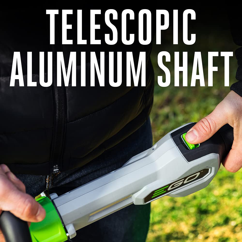 Details: "This 15 in. String Trimmer with POWERLOAD technology automatically winds your trimmer line. Replacing your string line is as easy as feeding the line into the head and pressing a button! With the telescopic aluminum shaft, easily adjust the shaft length for ease of use and comfort. This trimmer is built with a high-efficiency brushless motor, bump feed line advance, 0.095" professional cutting line, and is compatible with all EGO ARC Lithium batteries to maximize the convenience of cordless and deliver Power Beyond Belief".