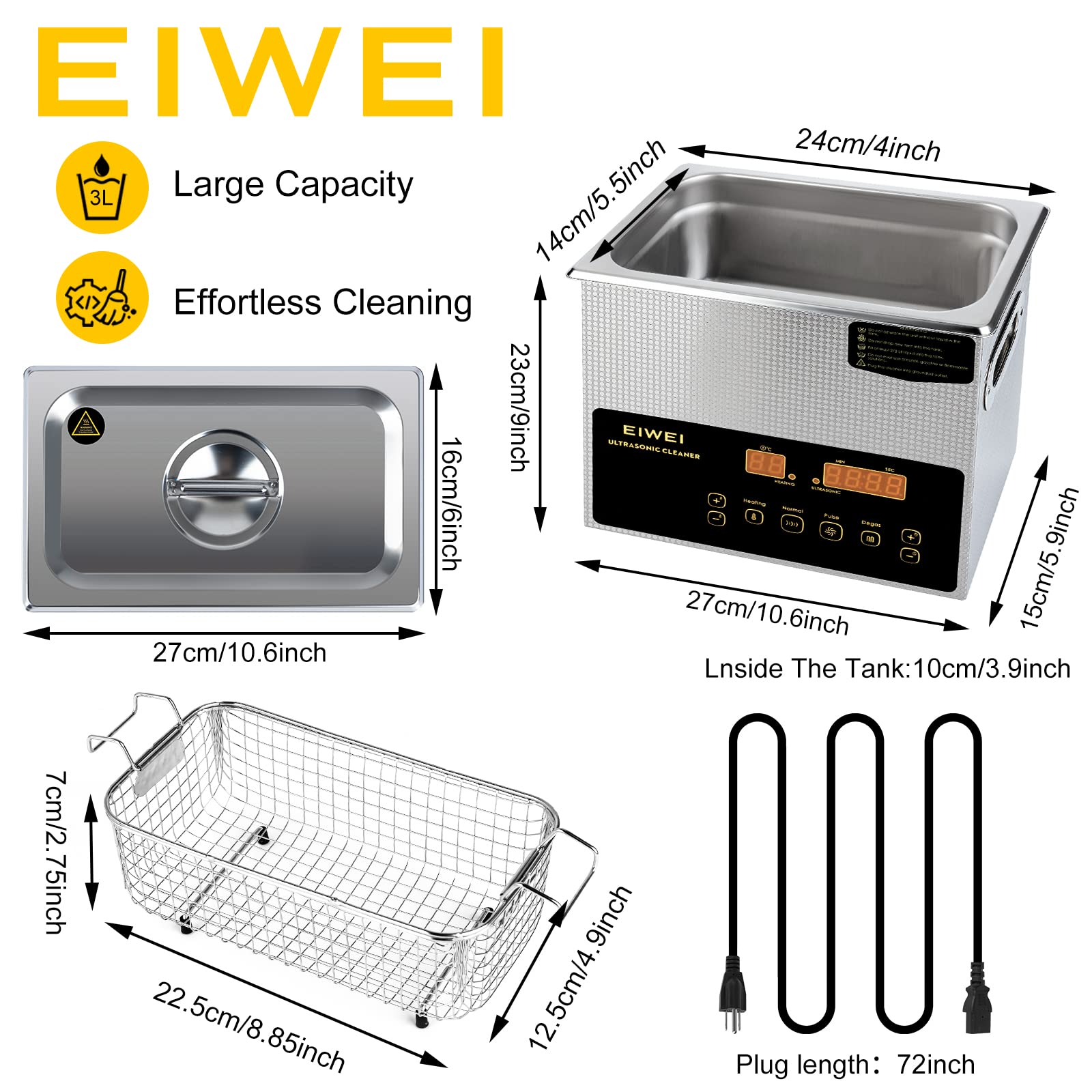 Elevate your cleaning game with our high-performance 3L Ultrasonic Cleaner. This state-of-the-art cleaning machine boasts dual-frequency capabilities and a user-friendly digital interface for effortless operation. Crafted from premium stainless steel and equipped with a handy heater timer, this cleaner is ideal for a wide range of items including carburetors, parts, circuit boards, glasses, dentures, and jewelry. Whether you're a hobbyist or a professional, this cleaner is designed to meet all your cleaning needs with ease and efficiency. Upgrade to our 3L Ultrasonic Cleaner and experience the power of superior cleaning technology.