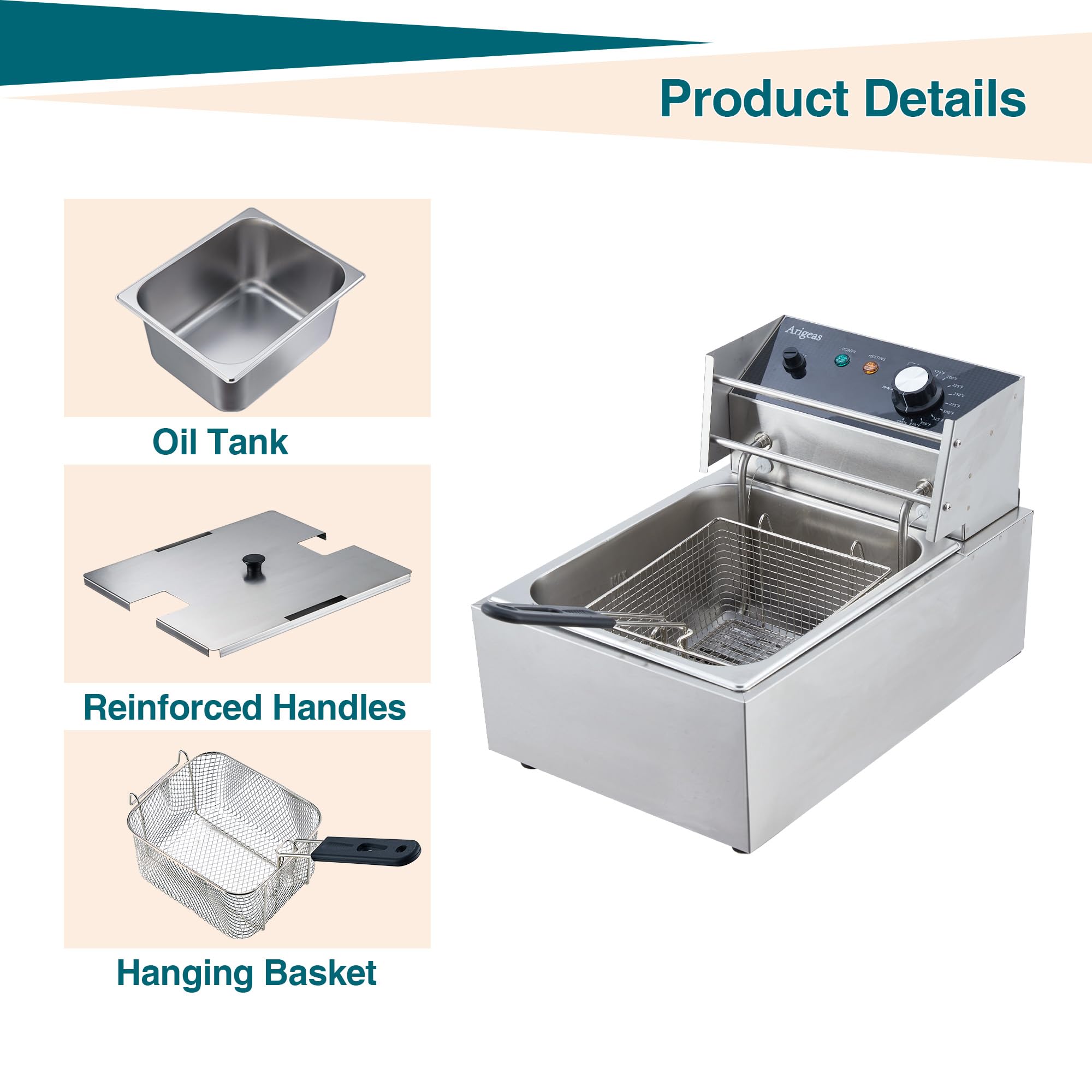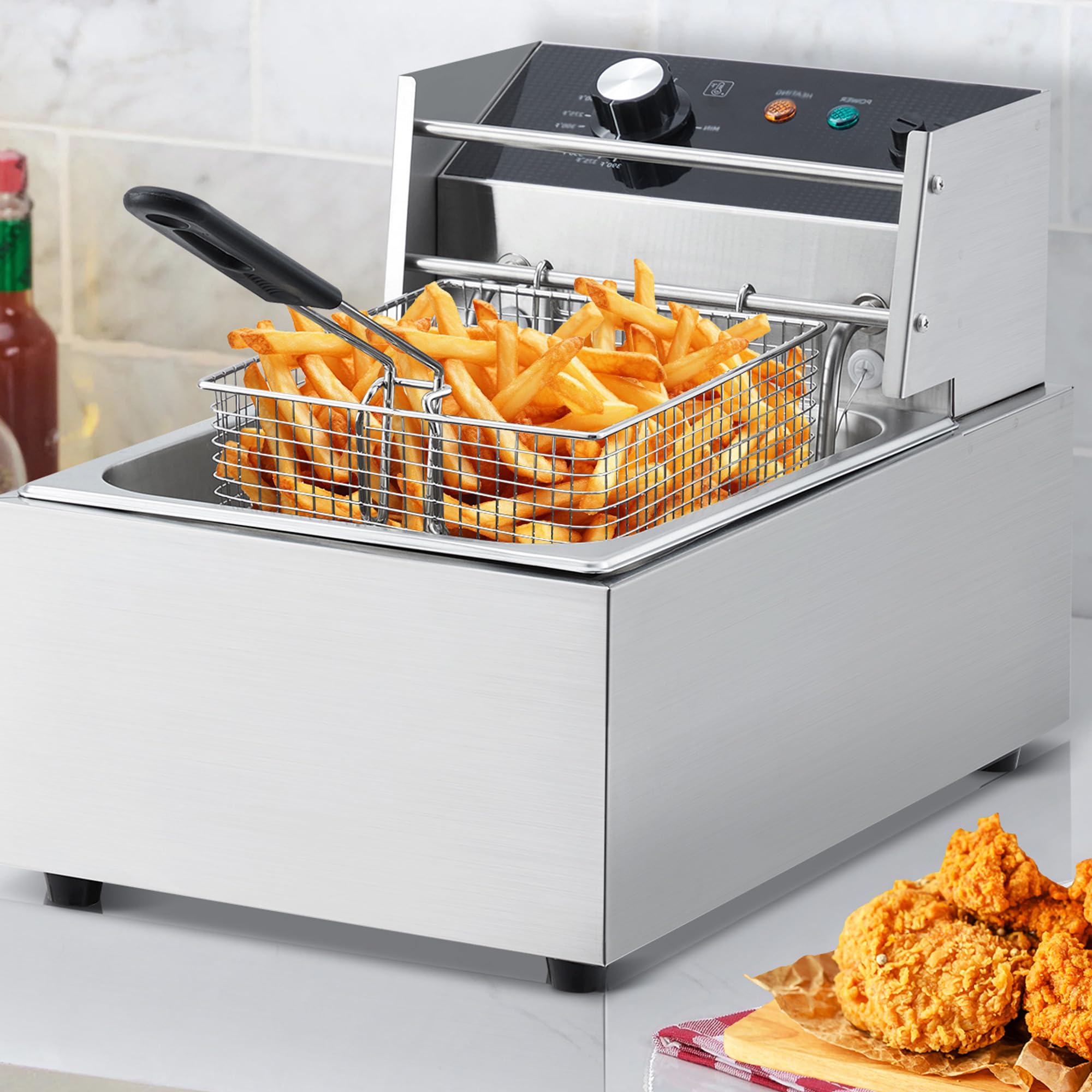 - Powerful Heating Element: Equipped with an 1800W, 120V heating element that quickly fries and maintains oil temperature, ideal for home kitchens and small commercial settings like delis and sandwich shops.