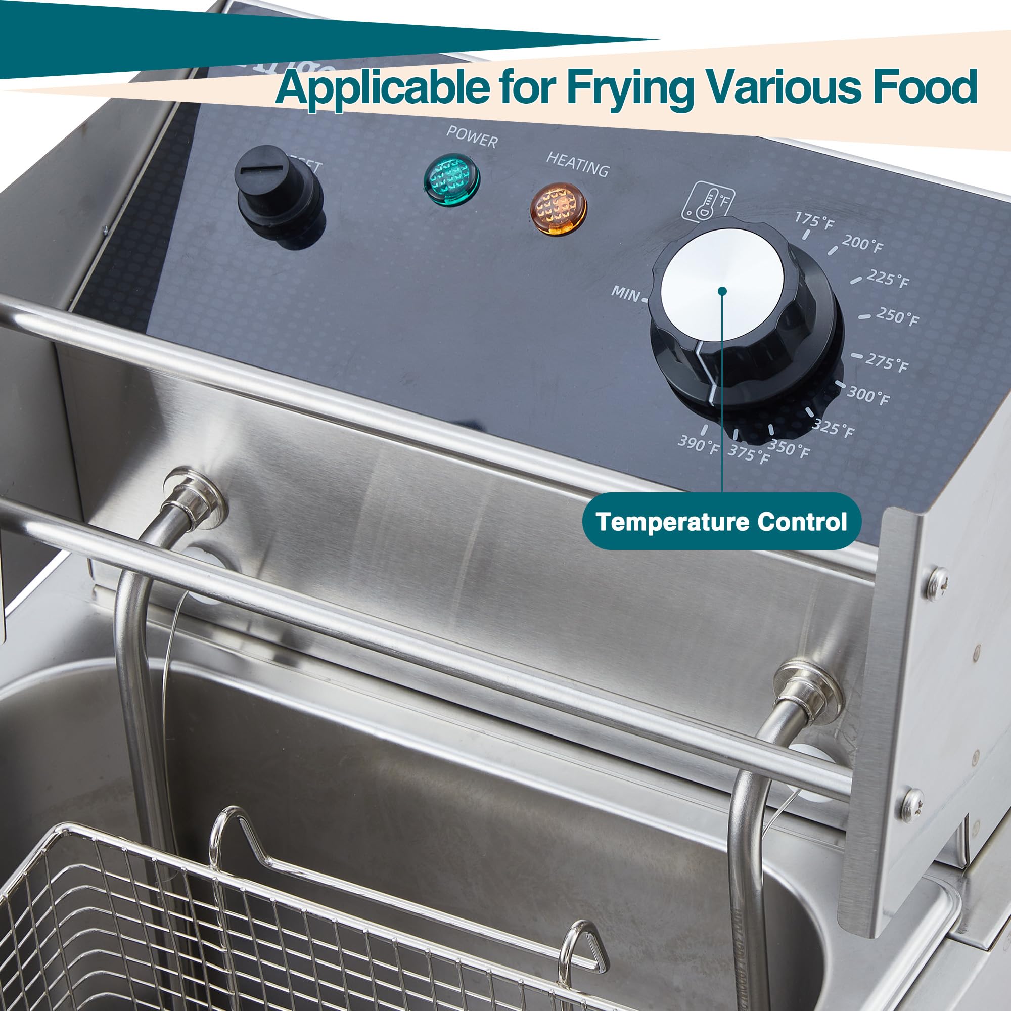 Enjoy precise cooking with adjustable temperature control from 122°F to 390°F (50°C-200°C) and a 60-minute timer, allowing you to tailor your frying to. The built-in guard plate balances oil temperature to ensure even frying, and an automatic shut-off feature activates if the temperature exceeds 464°F (240°C) or reaches your set limit, providing safety and peace of mind.