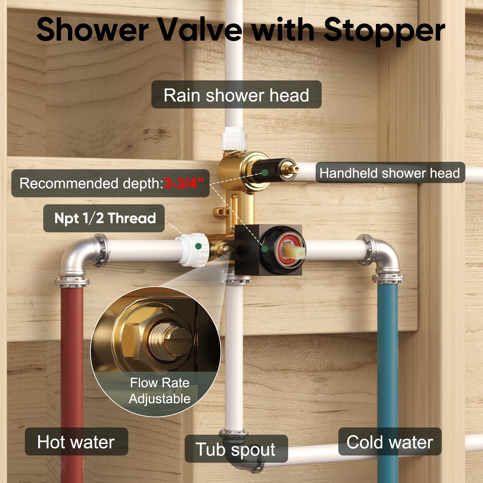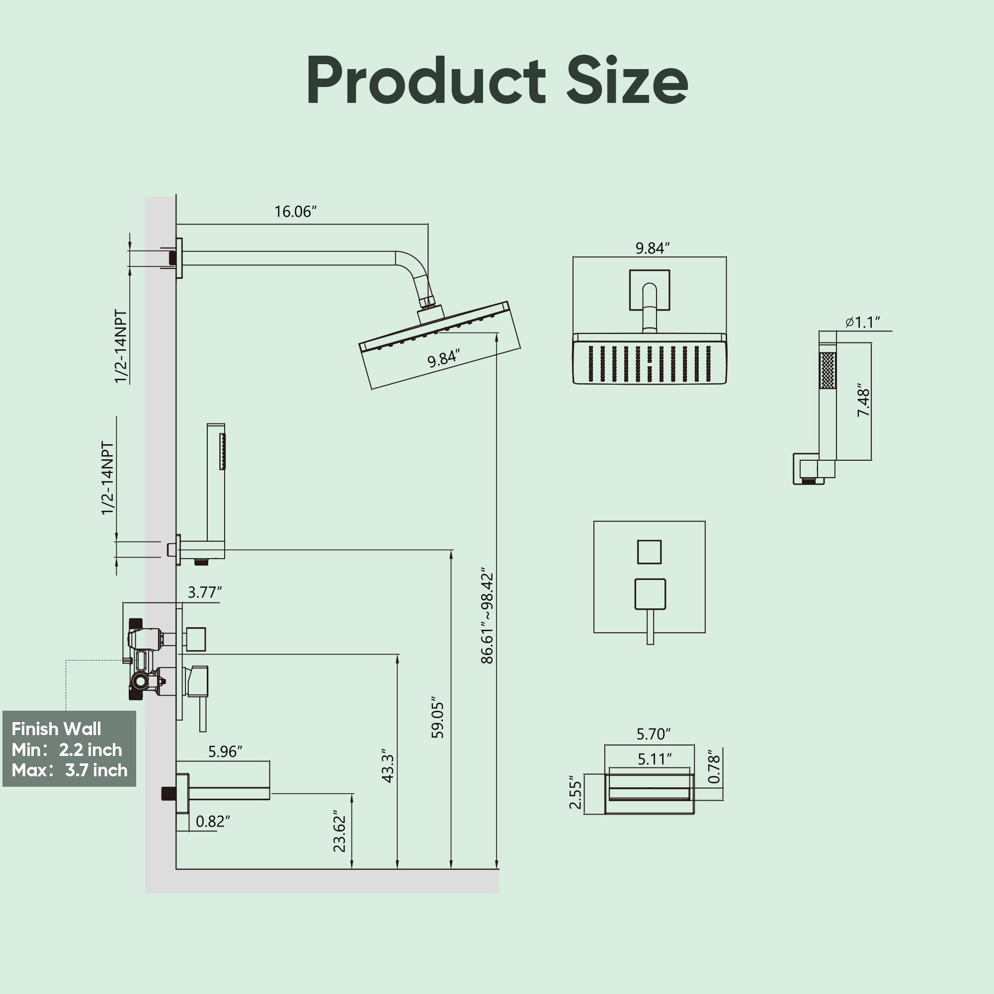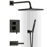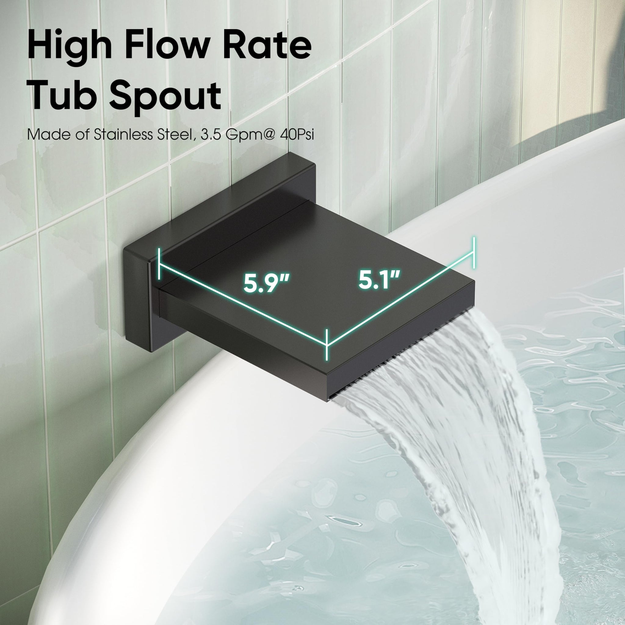 Upgrade your bathing experience with the Esnbia Shower System with Tub Spout in Matte Black. This sleek and modern Bathtub Shower Faucet Set features a 10 Inches Shower Head with Handheld Spray Combo, providing you with the ultimate showering experience. The Tub Shower Kit also includes a 3-Way Shower Valve for maximum customization. Transform your bathroom into a luxurious spa-like oasis with this stylish and functional shower set.