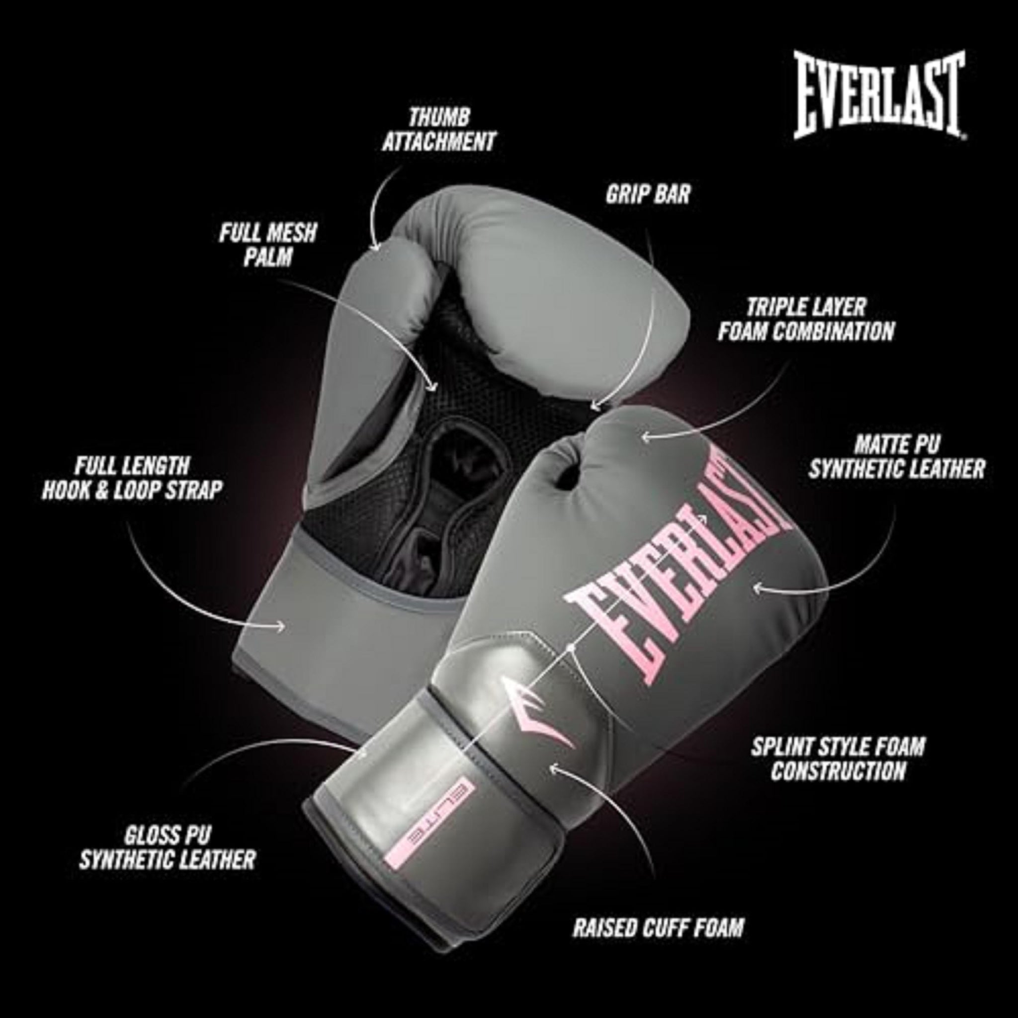 Details: The Everlast Elite 2 Boxing Gloves are the ultimate choice for fighters and trainers looking for maximum support and protection. Featuring a wedge-shaped full-length hook and loop strap for a secure fit, and an integrated palm foam section for increased protection, these gloves are designed to take your training to the next level. The triple-layer foam combination provides mid-level impact absorption, while the EverCool mesh palm increases ventilation to keep your hands cool and dry. The splint-style foam combination offers elite wrist support to prevent injuries, and the raised cuff panel deflects strikes during blocking. With an ergonomically correct foam grip bar and attached thumb, and a soft touch polyester lining for added comfort, the Everlast Elite 2 Boxing Gloves are the ultimate training companion.