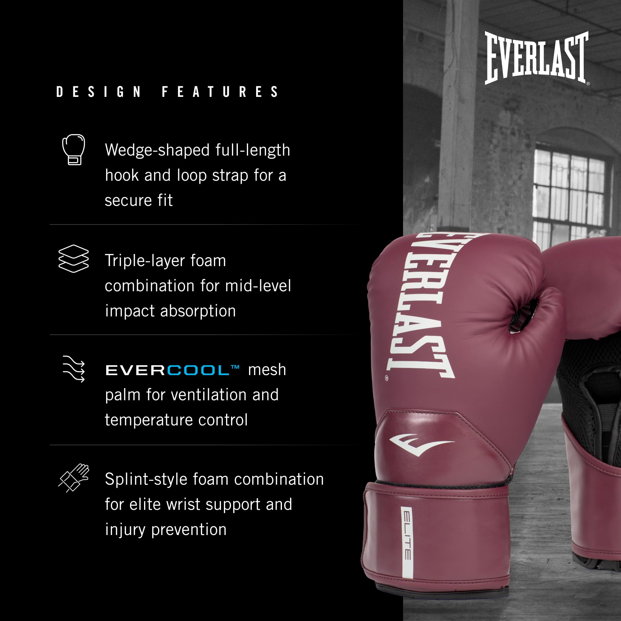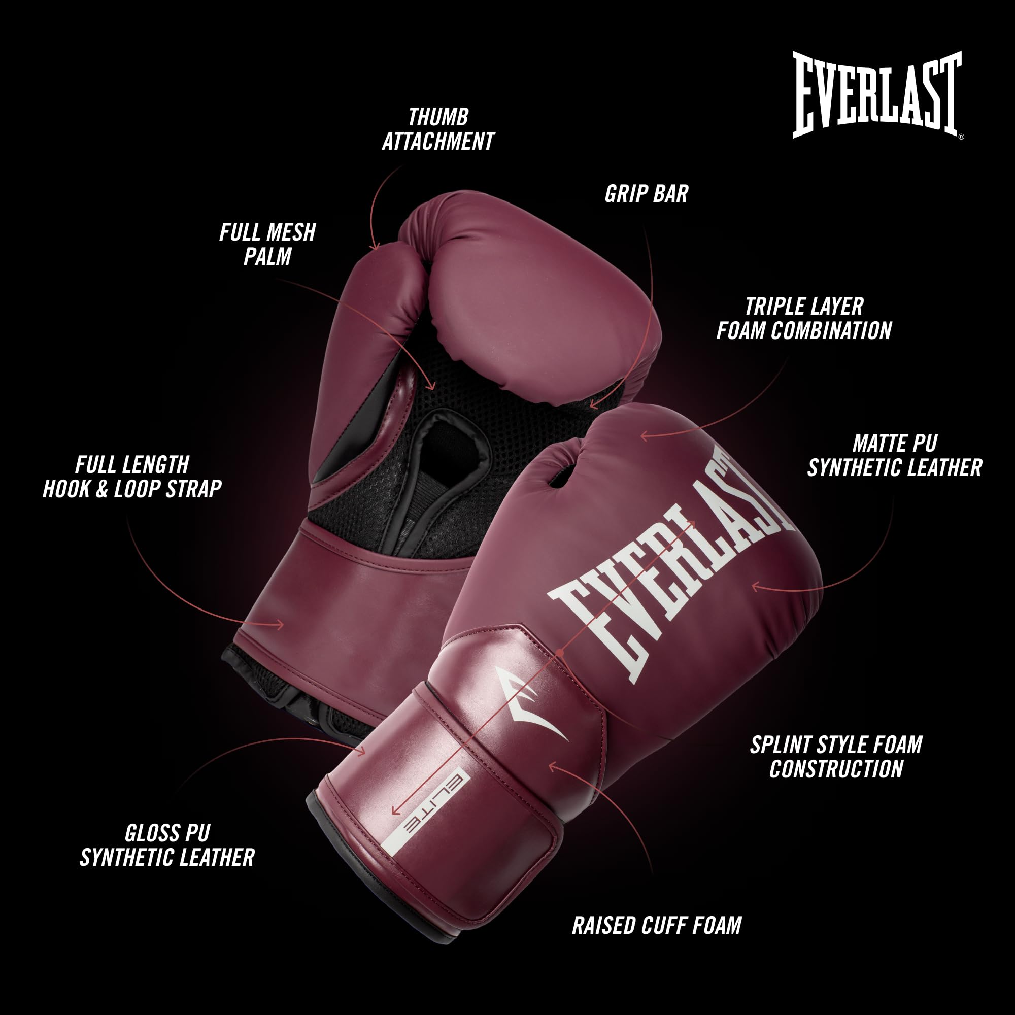 Details: Engineered for Elite Performance elevate your training regimen with the Everlast Elite2 Boxing Gloves, meticulously crafted to provide unparalleled support and protection. Boasting a wedge-shaped full-length hook and loop strap, these gloves ensure a secure and customized fit, allowing you to focus on honing your skills. The integrated palm foam section offers enhanced protection, while the triple-layer foam combination delivers mid-level impact absorption, safeguarding your hands during intense sparring sessions. Engineered with an EverCool mesh palm, these gloves promote optimal ventilation, keeping your hands cool and dry throughout your workout.