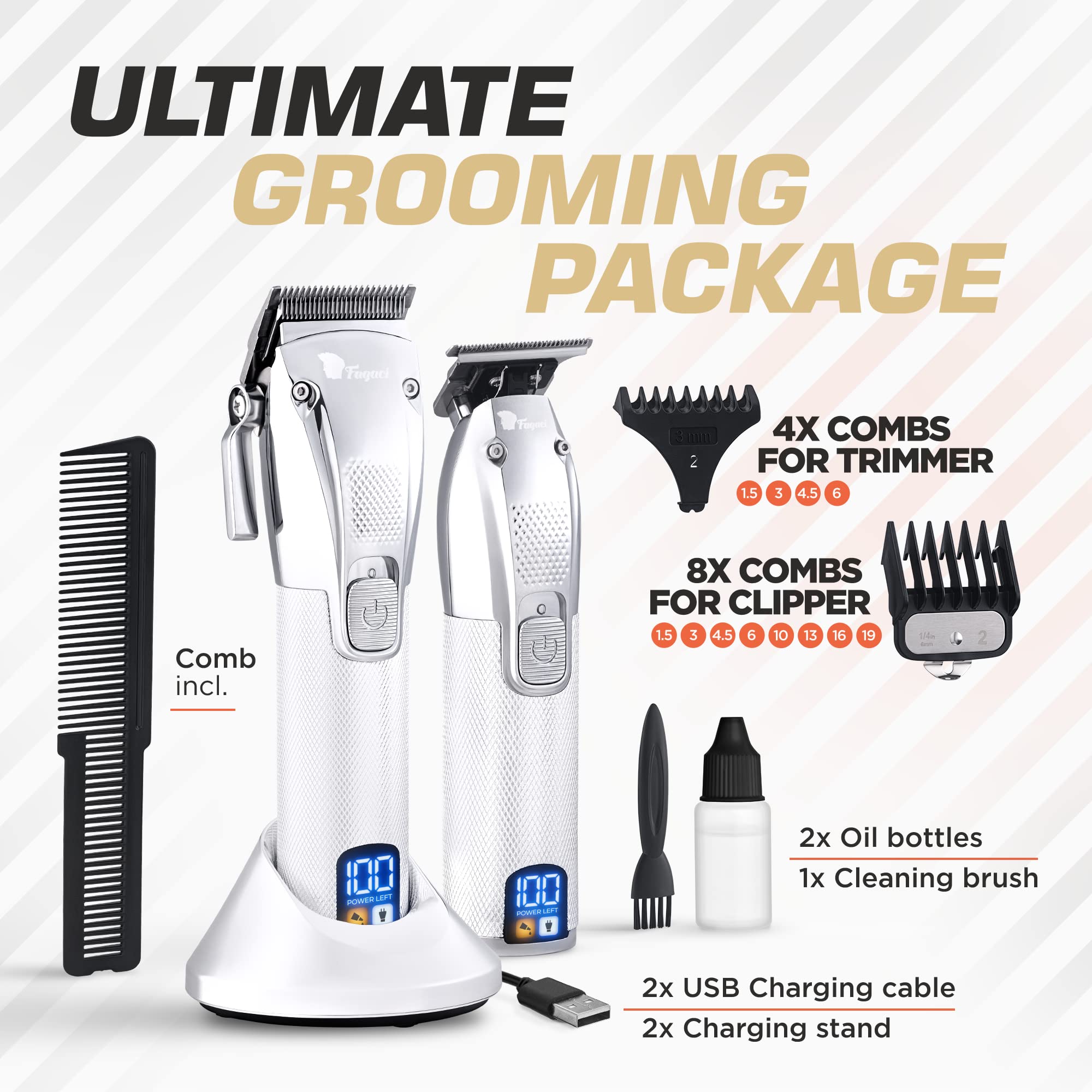 Elevate your grooming routine with the Fagaci Professional Hair Clippers for Men Set. Featuring Turbo Power for precise cutting, this barber clipper set is a must-have for any man looking to achieve a perfect haircut at home. Cordless and easy to use, these hair clippers and trimmers will give you a professional-quality haircut every time.