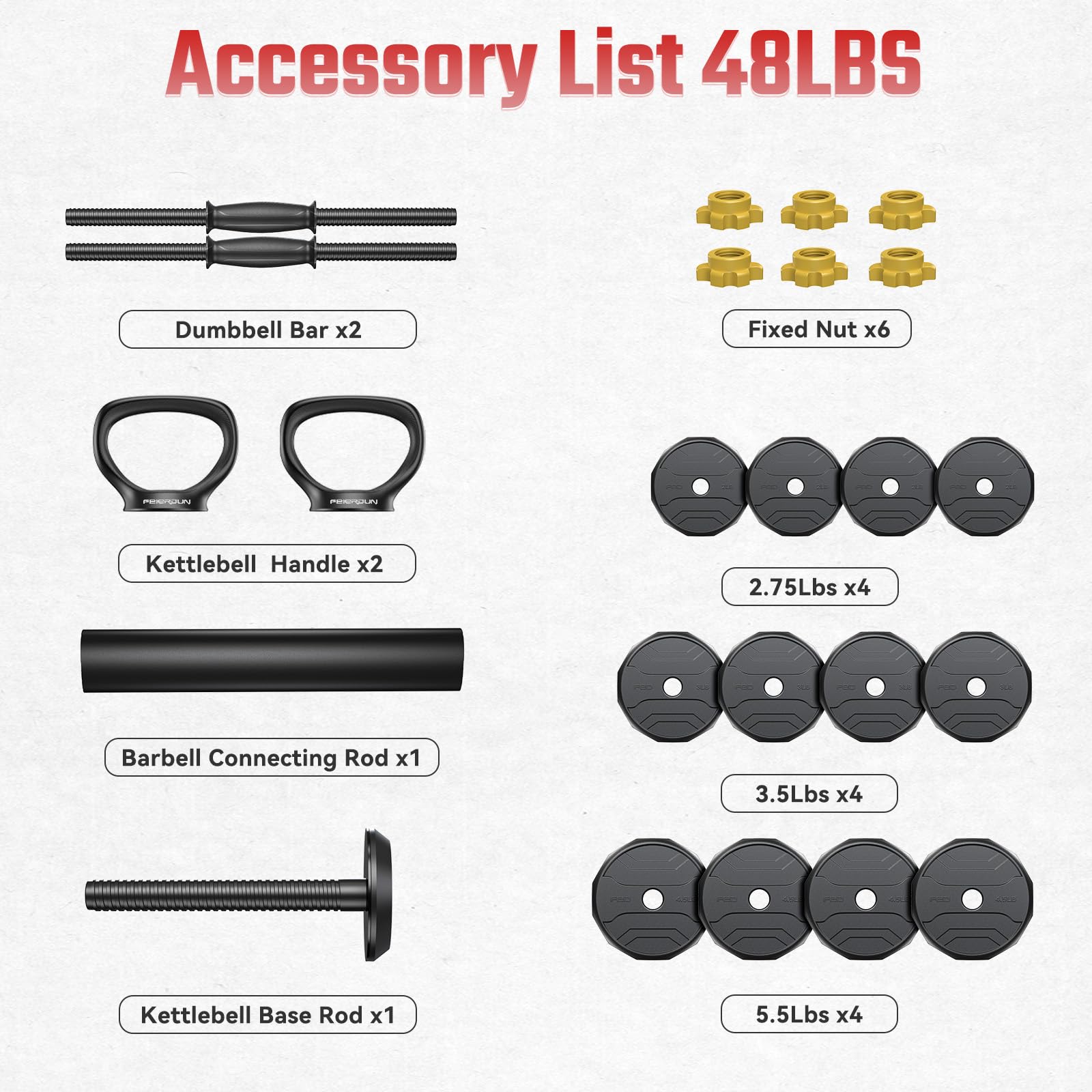 UNNMIIY Adjustable Dumbbell,10/20/35/45/70/90/110lbs Free Weight Set with Connector,4 in1 Dumbbell Used as Barbell,Kettlebells,Push up Stand,Fitness Exercises Home Gym Men/Women(45LBS(22.5LBS PAIR))