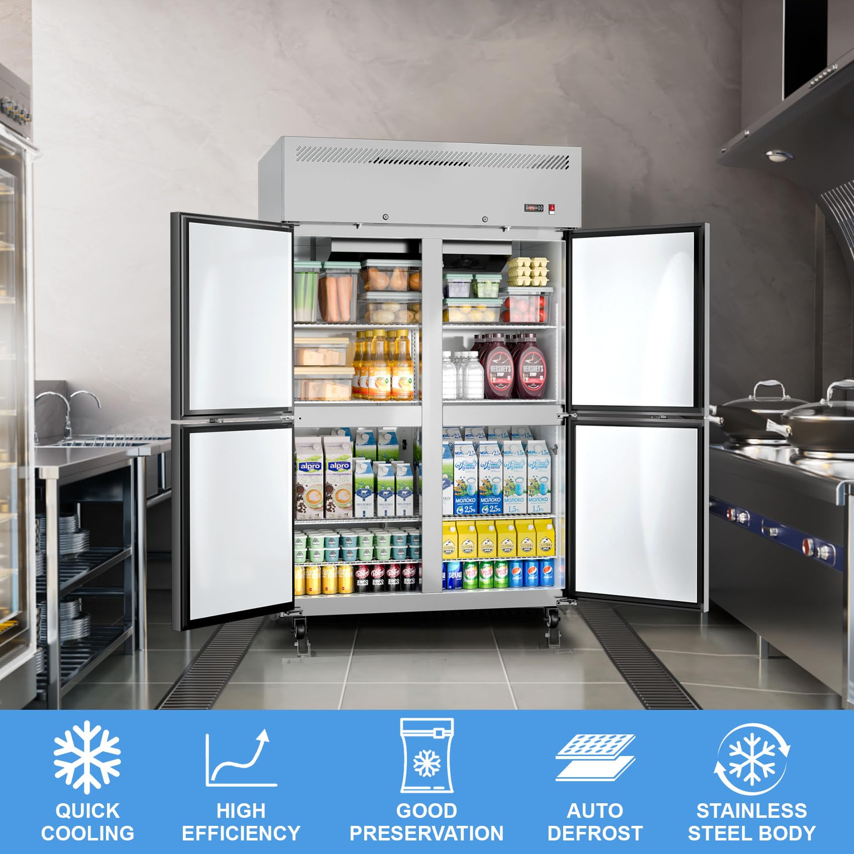 - User-Friendly Commercial Design - The 203-degree wide-opening door with auto-close function (activates below 90°) maximizes accessibility. Four solid commercial-grade doors and a pause-on-open fan system prevent warm air ingress, maintaining internal temperatures and reducing energy waste.