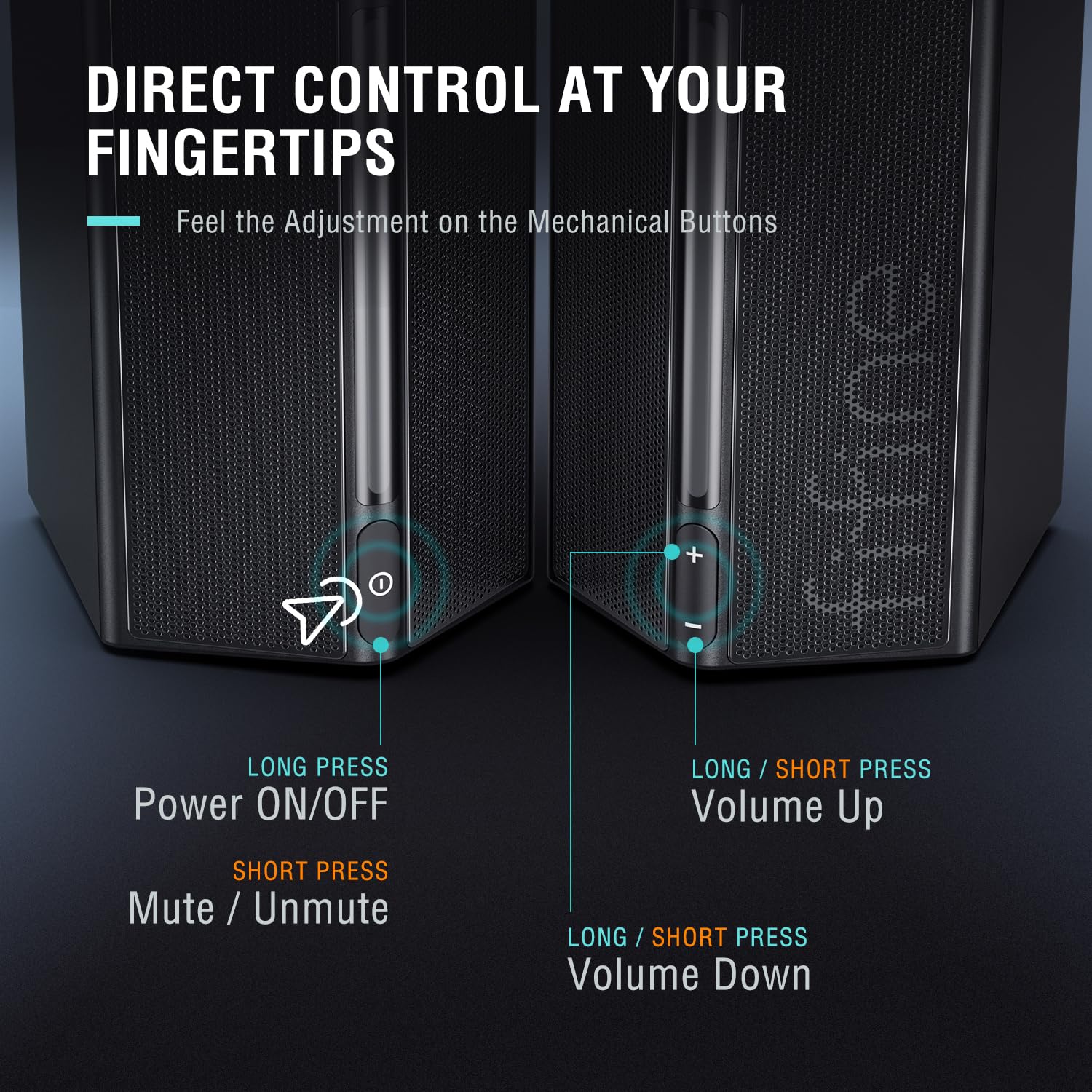 - [Volume Control at Your Fingertips] PC monitor speakers feature intuitive volume and mute buttons, providing effortless control over your audio experience. When you're deep in the heart of a tactical shooter, coordinating with teammates, turn up the volume to amplify the intensity of the battlefield. A gripping adventure game with whispered conversation stimulate gaming progress. Mute button allow instant silence elevating your overall immersion and enjoyment.