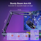 - Enhanced Features-Featured -50dB sensitivity and cardioid polar pattern, the USB recording mic kit not easily pick up background noise but excels in clear sound quality. The PC gaming microphone USB kit includes a boom arm for easy positioning, mute button and gain knob for precise control, headphones jack for real-time monitoring, and headphone volume control while streaming or recording.