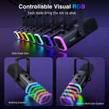 - Vibrant RGB Light-The streaming microphone RGB illuminates your gaming setup with customizable RGB lighting for a visually stunning game experience. You can easily control the RGB mode/colors or turn off by simply tapping the RGB button without making any complicated settings on specific software.