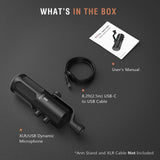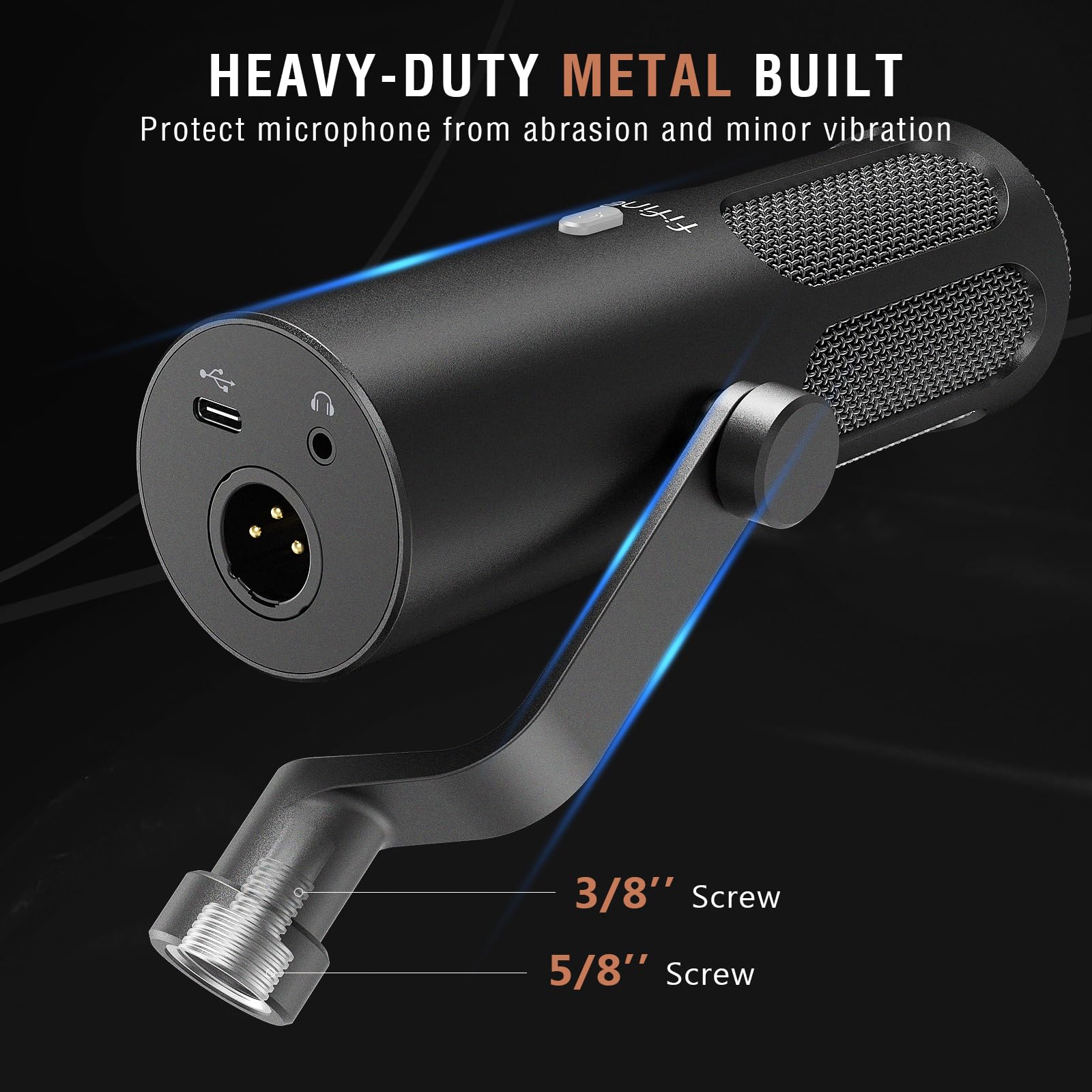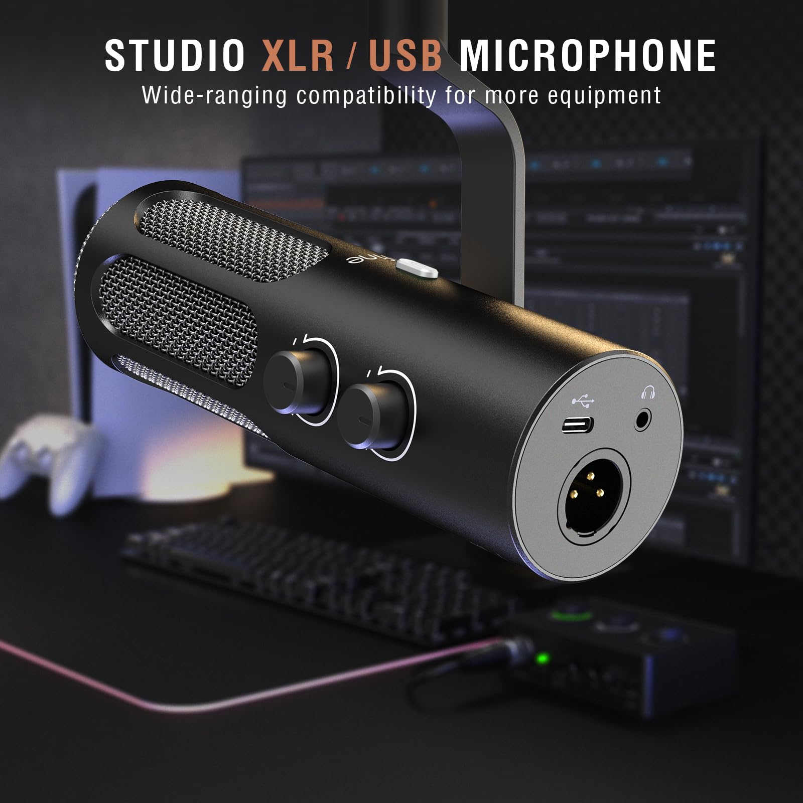 - [Upgrade-able XLR/USB Connection] The XLR/USB dynamic microphone gives you the way to start out with USB and then upgrade down the road to XLR. The recording microphone transferring audio signal going to different programs/games. Two connection versatility ensures that you get the investment of the podcast microphone by using it for a variety of recording purposes.(Tip: You can adjust your audio by connecting the sound card, but this microphone does not require a 48V phantom power supply)