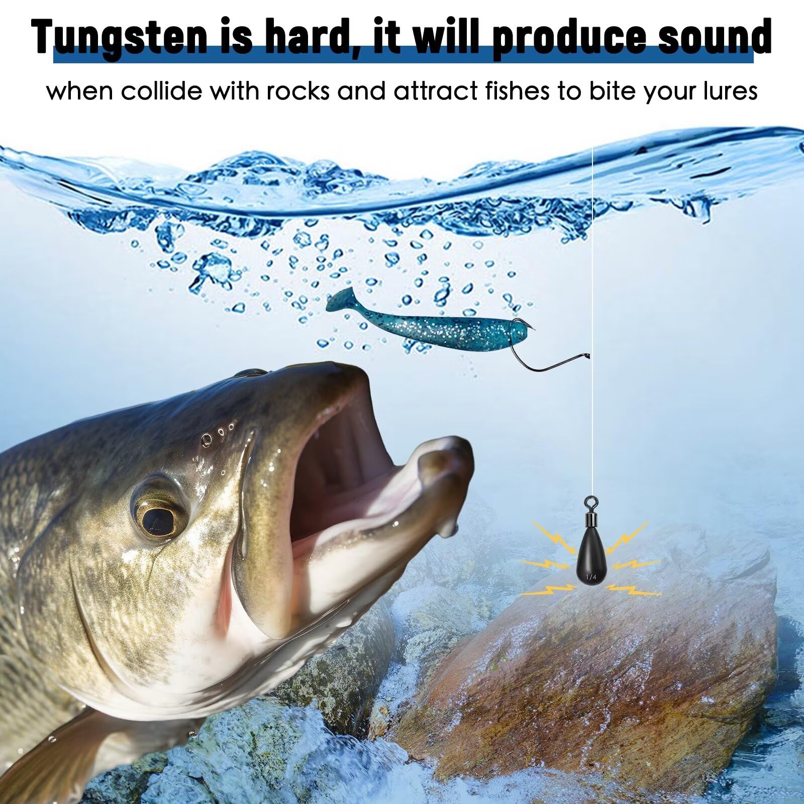 - Sensitive - Tungsten drop shot weight is hard and it gives you a better feel for what your bait is doing whether you are fishing wood, rocks, sand or clay bottom. This heightened sensitivity enables to get more successful hookups.