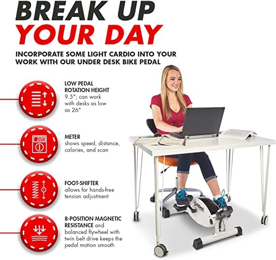 • INTEGRATED DIGITAL DISPLAY - The mini exercise bike comes with a digital display that shows time, speed, distance, and calories burned. Easily mount it on the bike or remove it for desk use to track your progress and stay motivated during your workouts.