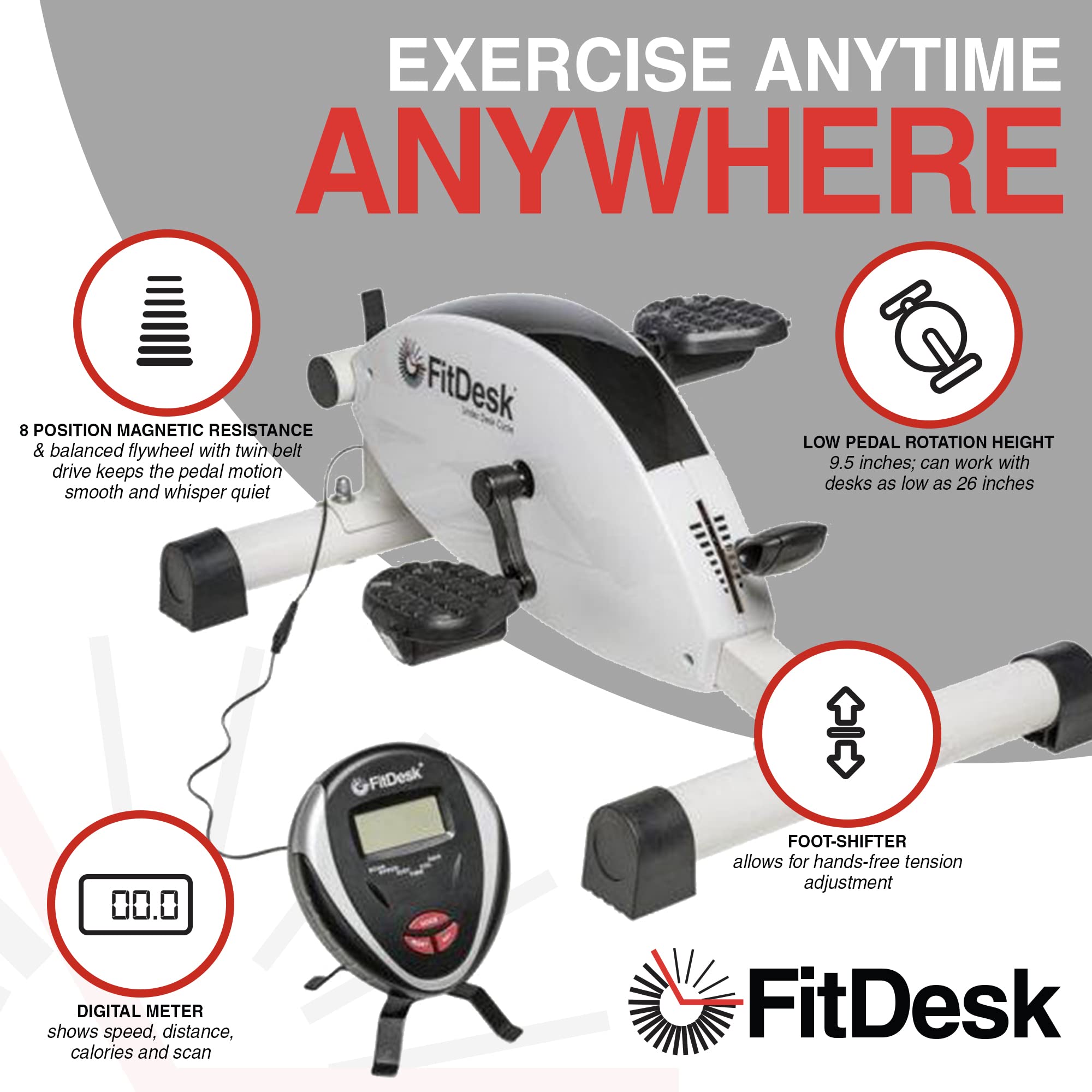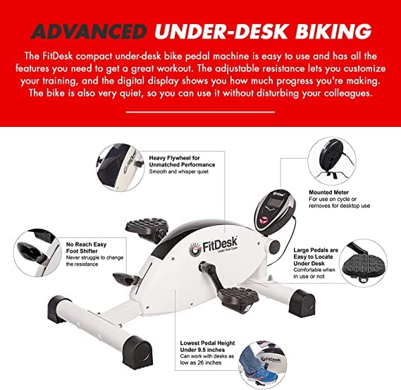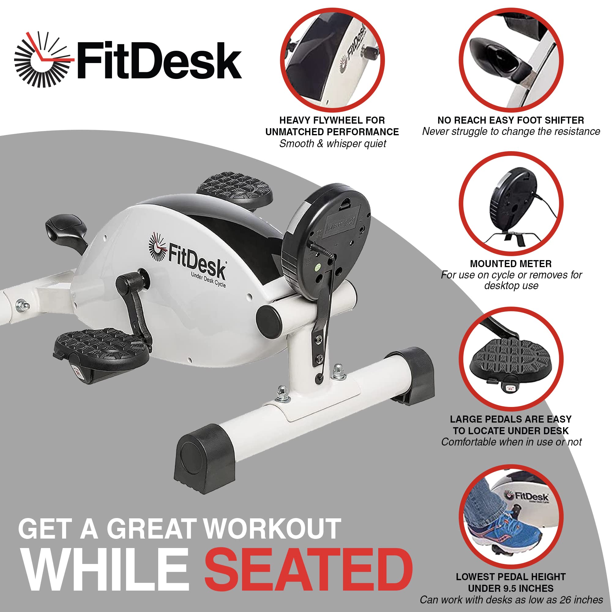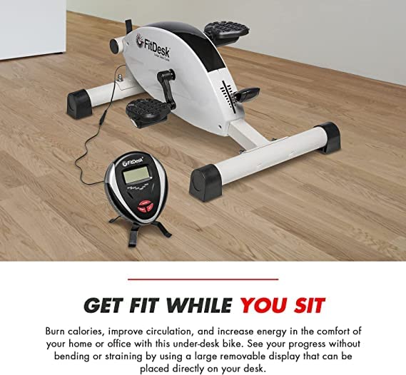 • FITNESS UNDER ANY DESK - The FitDesk Under Desk Cycle is designed to fit desks as low as 26 inches, with a minimum pedal height of 9.75 inches. Ideal for home or office use, this desk bike pedal exerciser ensures you can stay active even with limited space.