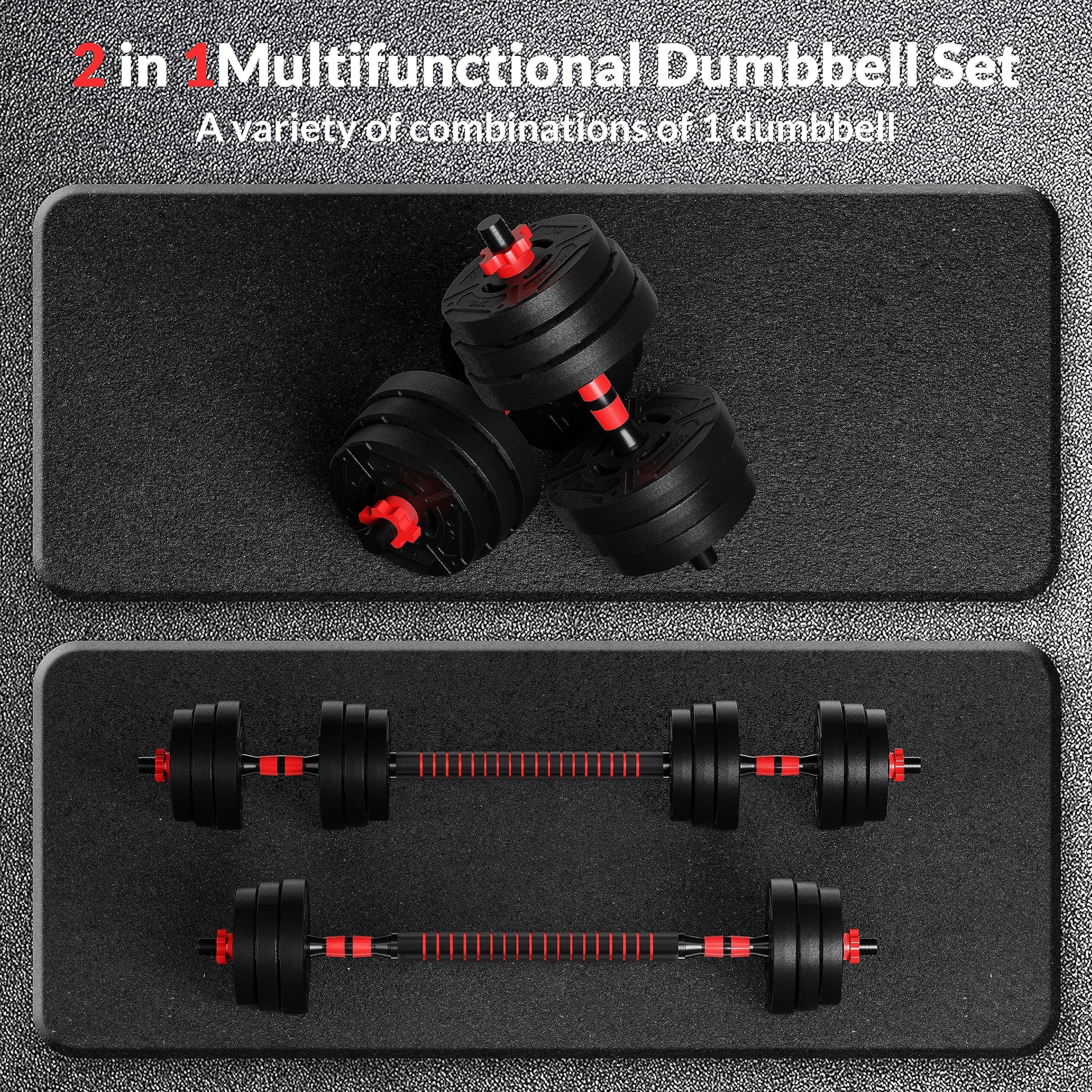 - 2-in-1 Multifunctional Set - Changeable from dumbbells to barbells, this 2-in1 multifunctional set serves all your exercise and fitness purposes