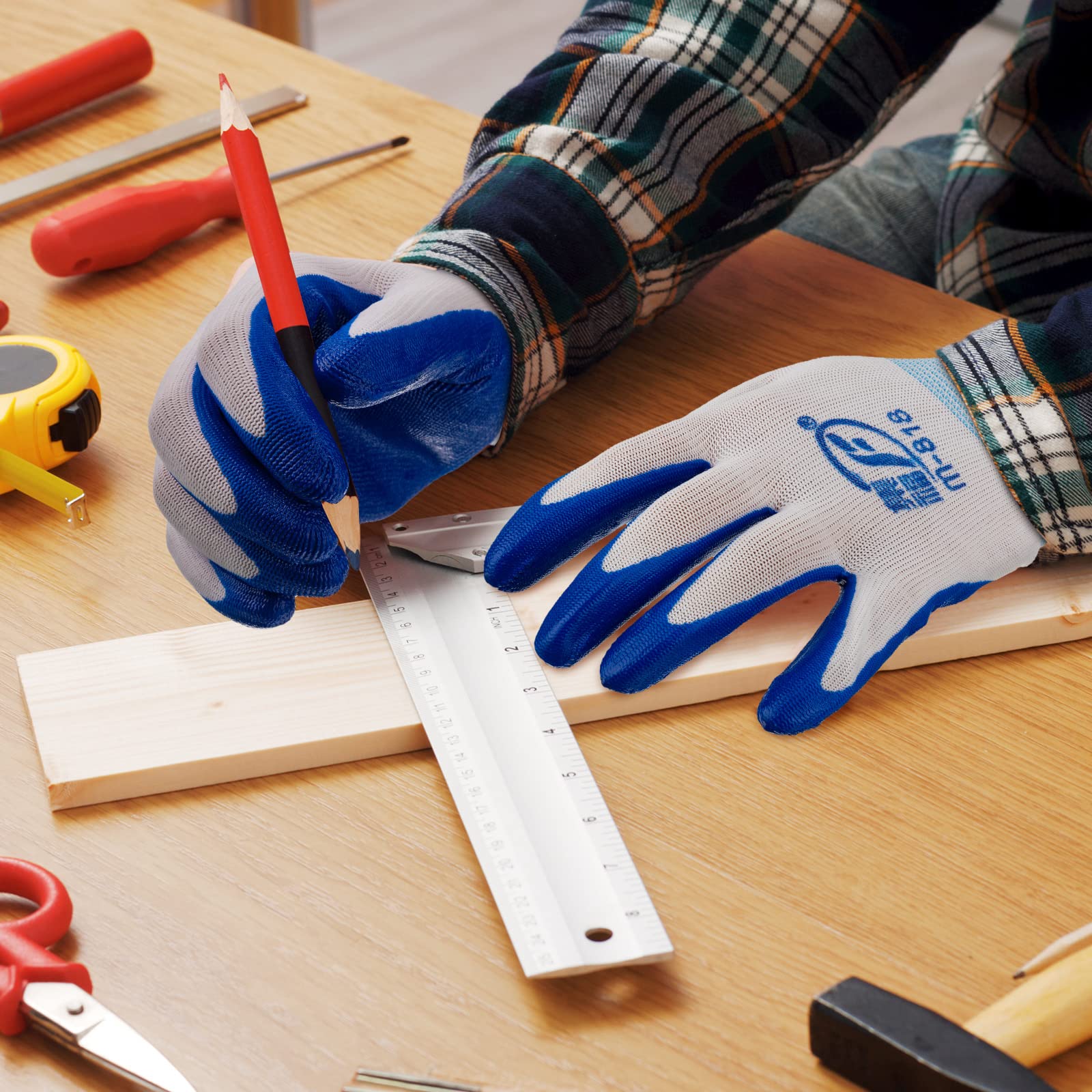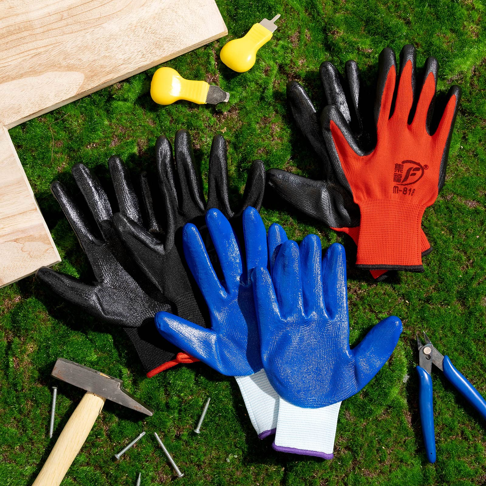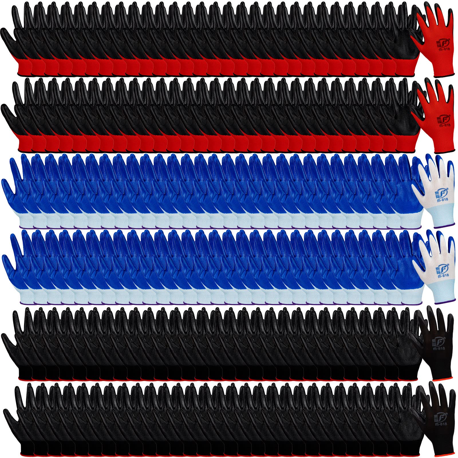 120 Pair Gardening Gloves for Men Women, Breathable Rubber Coated Garden Gloves Working Gloves for Gardening, Construction (Black, Red, Blue)