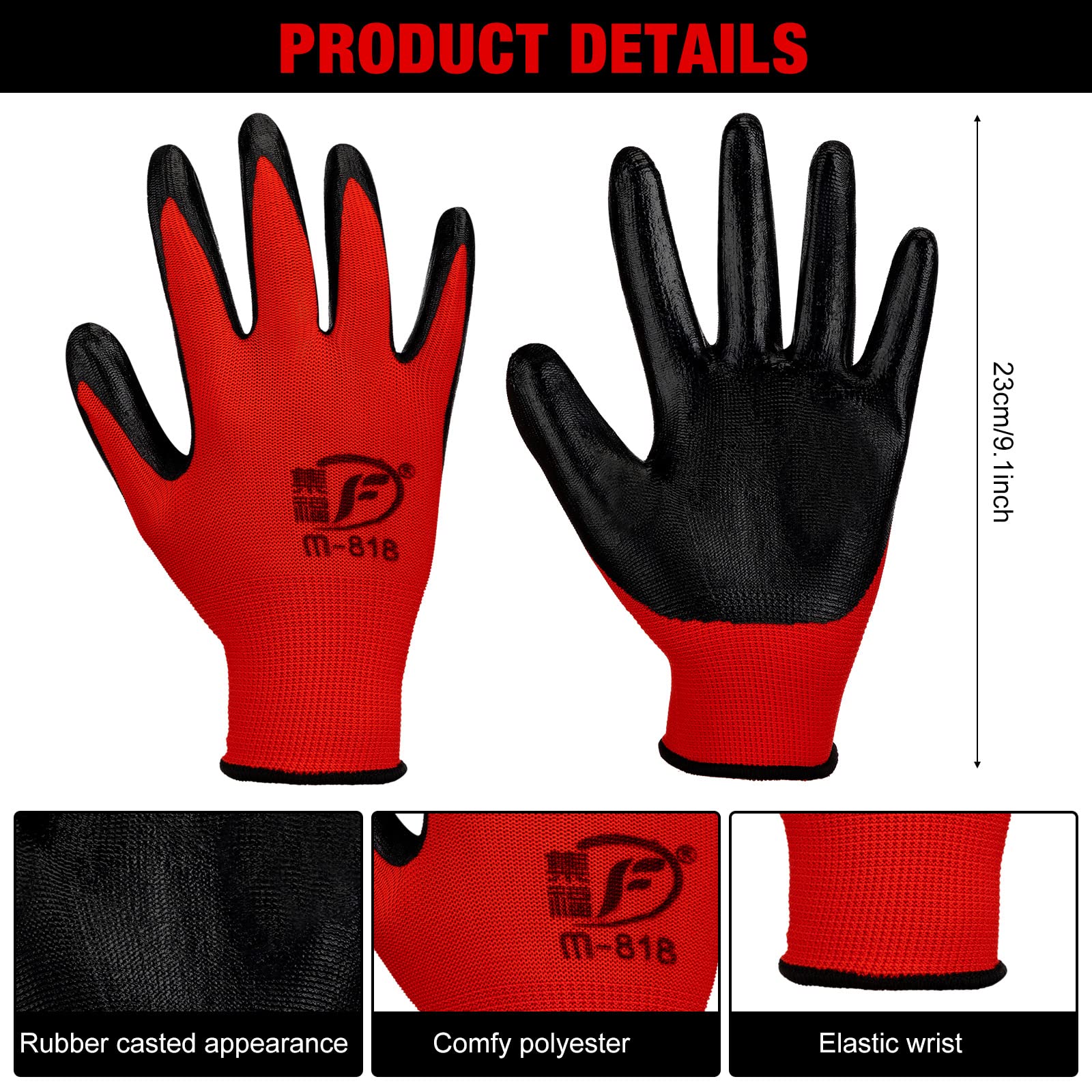 120 Pairs Gardening Gloves Bulk for Men Women Breathable Rubber Coated Gloves for Garden Yard(Red, Black)