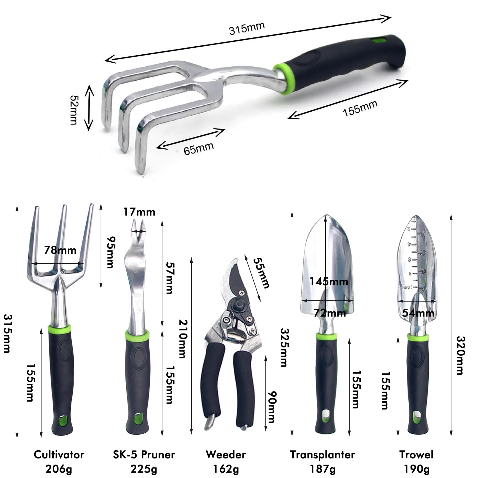 - 【Ergonomic Comfort】: Each tool in this set boasts an ergonomically designed handle that provides a comfortable, firm grip, maximizing efficiency and user experience during gardening tasks.