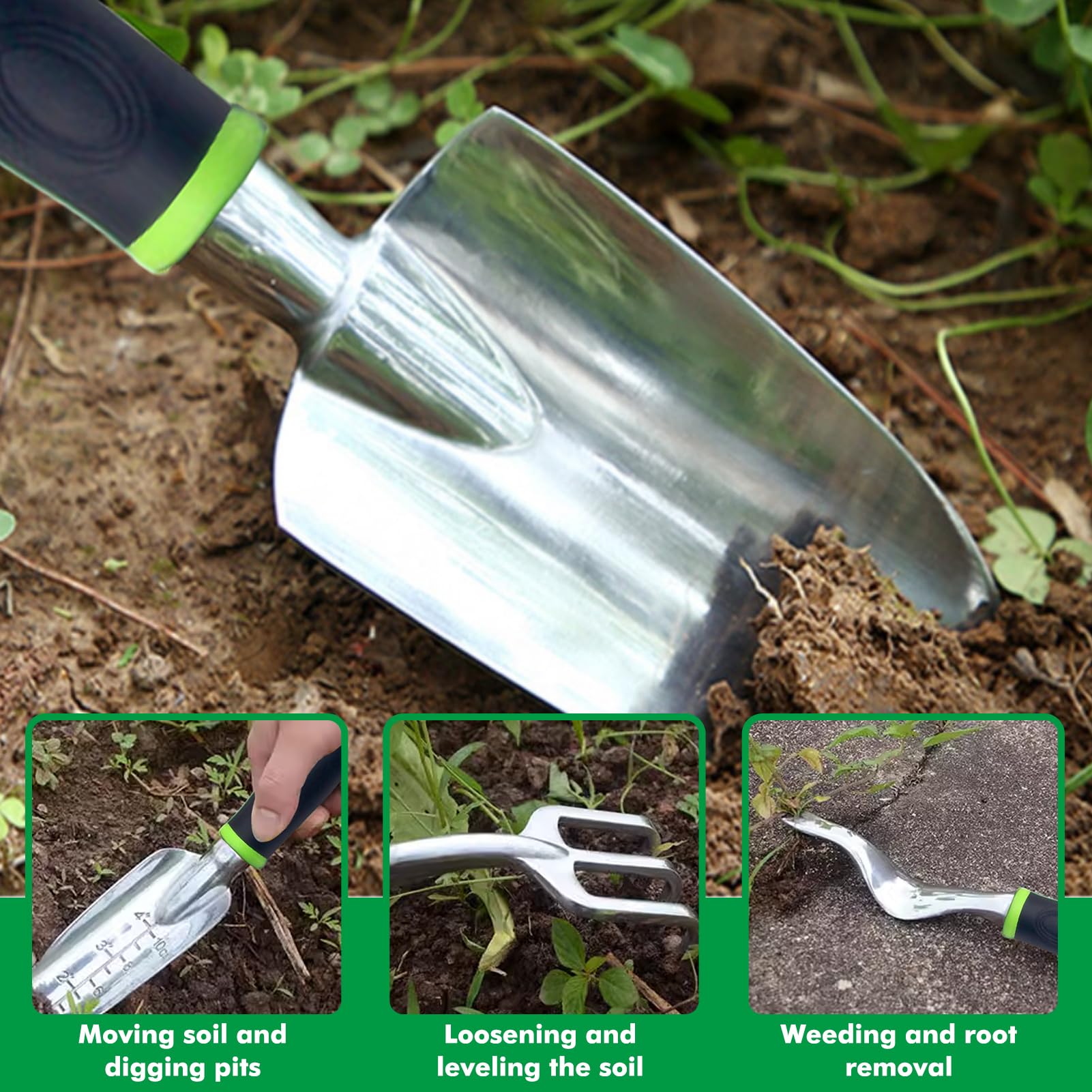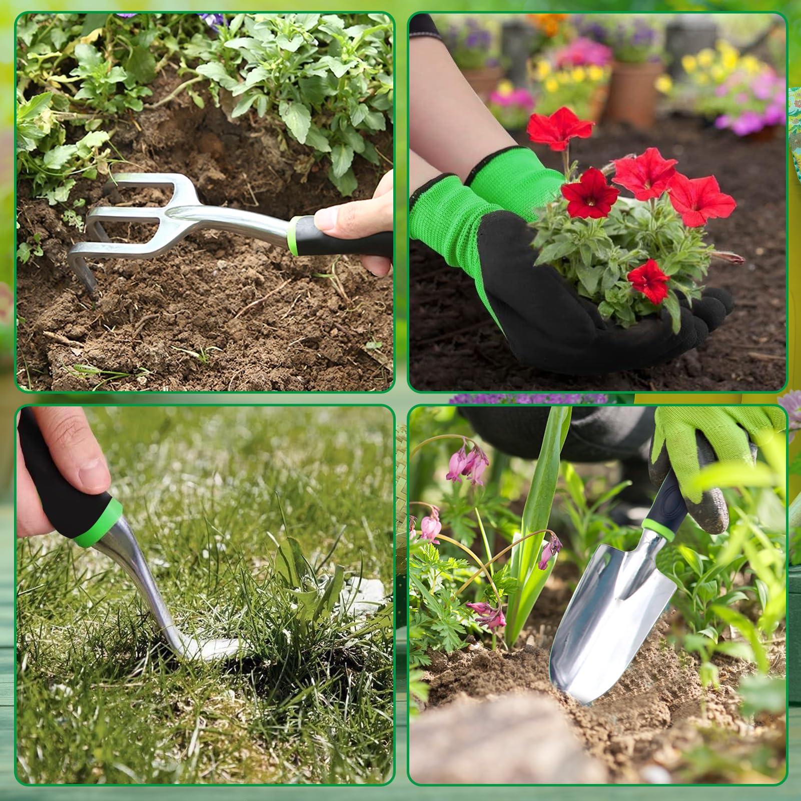 - 【Premium Quality】: Crafted from high-caliper cast aluminum, this garden tool set features rust-free tools and ergonomic soft-grip handles, reducing arm fatigue and ensuring durability and comfort.