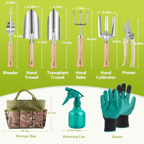 12-Piece Heavy Duty Stainless Steel Gardening Tools Kit with Storage Organizer Handbag & Tool Apron - All-in-One Premium Garden Gift Set for Women/Men