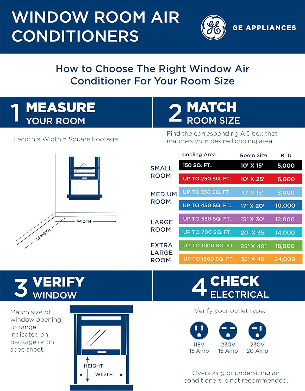 Details: As the #1 Window Air Conditioner Brand in the United States, GE Appliances is committed to delivering the perfect cooling solution for any room size. Designed for exceptional comfort with minimal noise, this 14,000 BTU smart window air conditioner efficiently cools rooms up to7550 square feet. Featuring Wi-Fi connectivity, this unit allows you to control your comfort from anywhere using your smartphone or voice commands via popular smart home devices. With 3 cooling modes, 3 fan speeds, and an Eco Mode, you can customize your cooling experience while maximizing energy efficiency. The electronic thermostat provides precise temperature control to meet your specific needs.