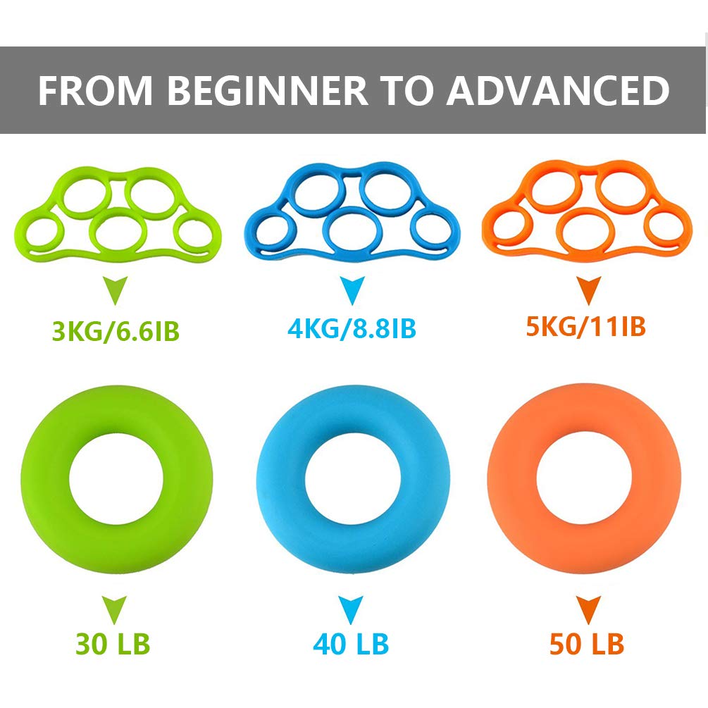 - ❤【What You Get】1x 6.6lbs Finger Stretcher,1x 8.8lbs Finger Stretcher,1x 11lbs Finger Stretcher,1x 30lbs Hand Grip Ring,1x 40lbs Hand Grip Ring,1x 50lbs Hand Grip Ring.24-Month replacement warranty and lifetime friendly customer support service.