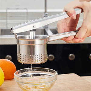 Take your cooking skills to the next level with our innovative Fruit & Vegetable Juicer. Whether you're making mashed potatoes, pureeing fruits for smoothies, or crushing vegetables for soups, this handy tool has you covered. Its sturdy stainless steel construction ensures durability and long-lasting performance, while its user-friendly design makes it easy to use and clean. Say goodbye to lumps and chunks in your recipes and hello to silky smooth textures with this versatile juicer.