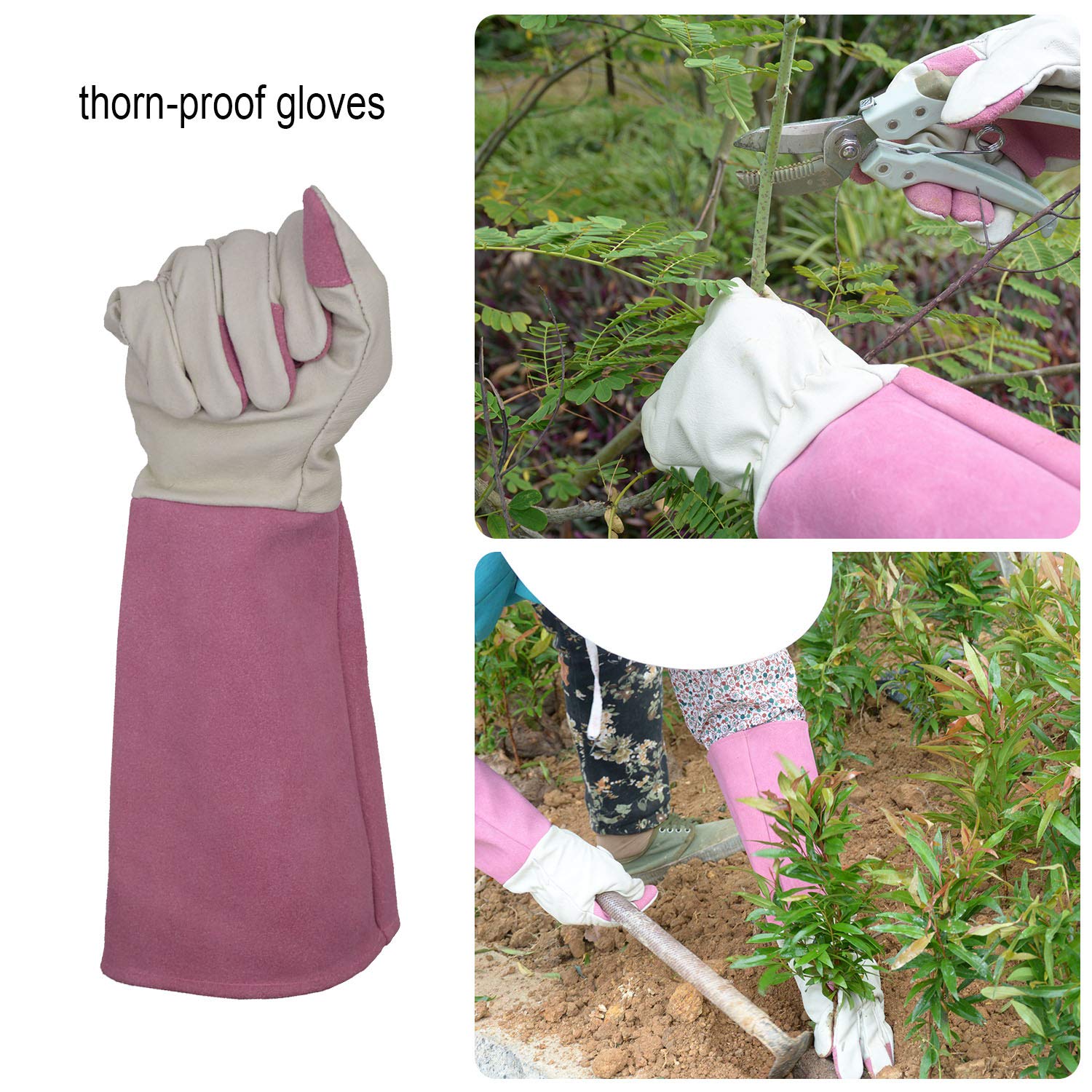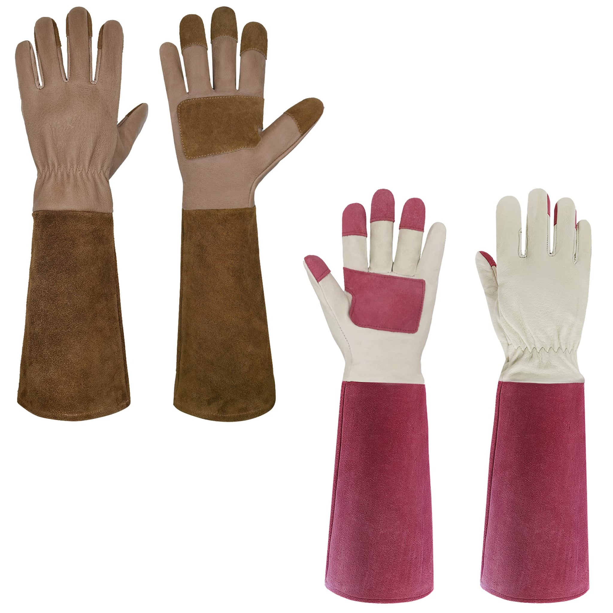 Details: 2 pairs of HANDLANDY pigskin leather long rose pruning gloves that are used for trimming roses, pruning holly bushes, berry bushes and other prickly shrubs,handling succulents and cactus, etc.