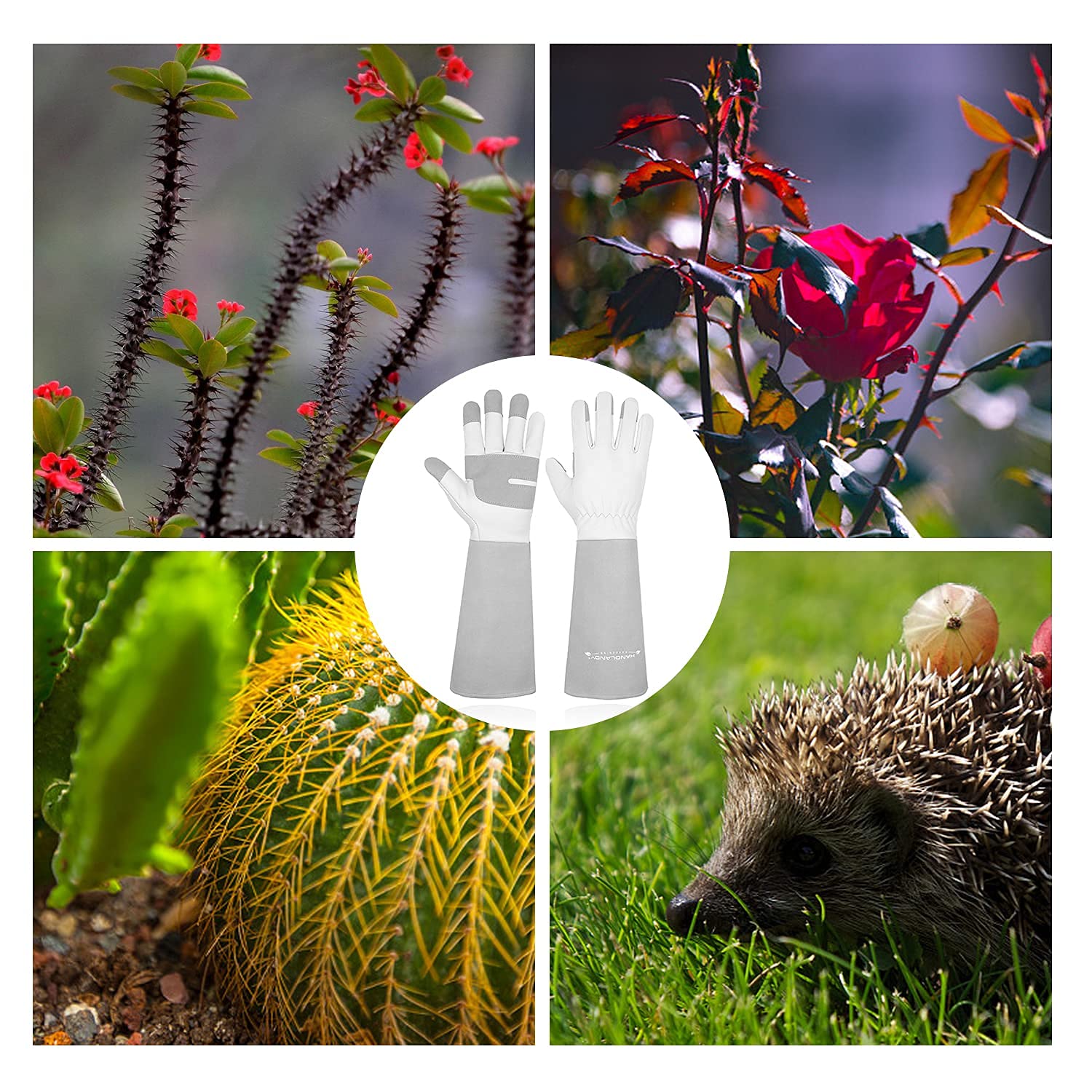 - This bundle includes a pair of rose pruning long gardening pigskin gloves which is brown and a thorn proof yard work leather gloves in grey. Get two different materials of useful gloves at one time, also the best choice to be given as a cool gift.