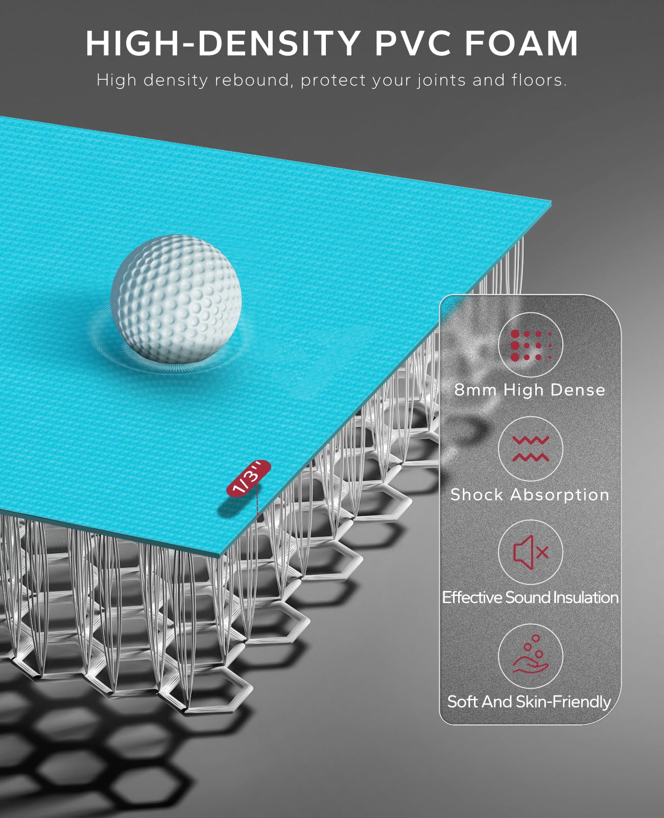 - Extra Cushion & Comfortable:Our large exercise yoga mat adopts high-density foam technology, up to 8mm thick (greater than ⅓ inch).Very soft and skin-friendly. High-density workout mat can protect your knee and other joints during intense aerobic exercise, and play a role in shock absorption. Excellent durability, tear resistance and wear resistance, designed for high-intensity training. It can also reduce noise and protect the floor