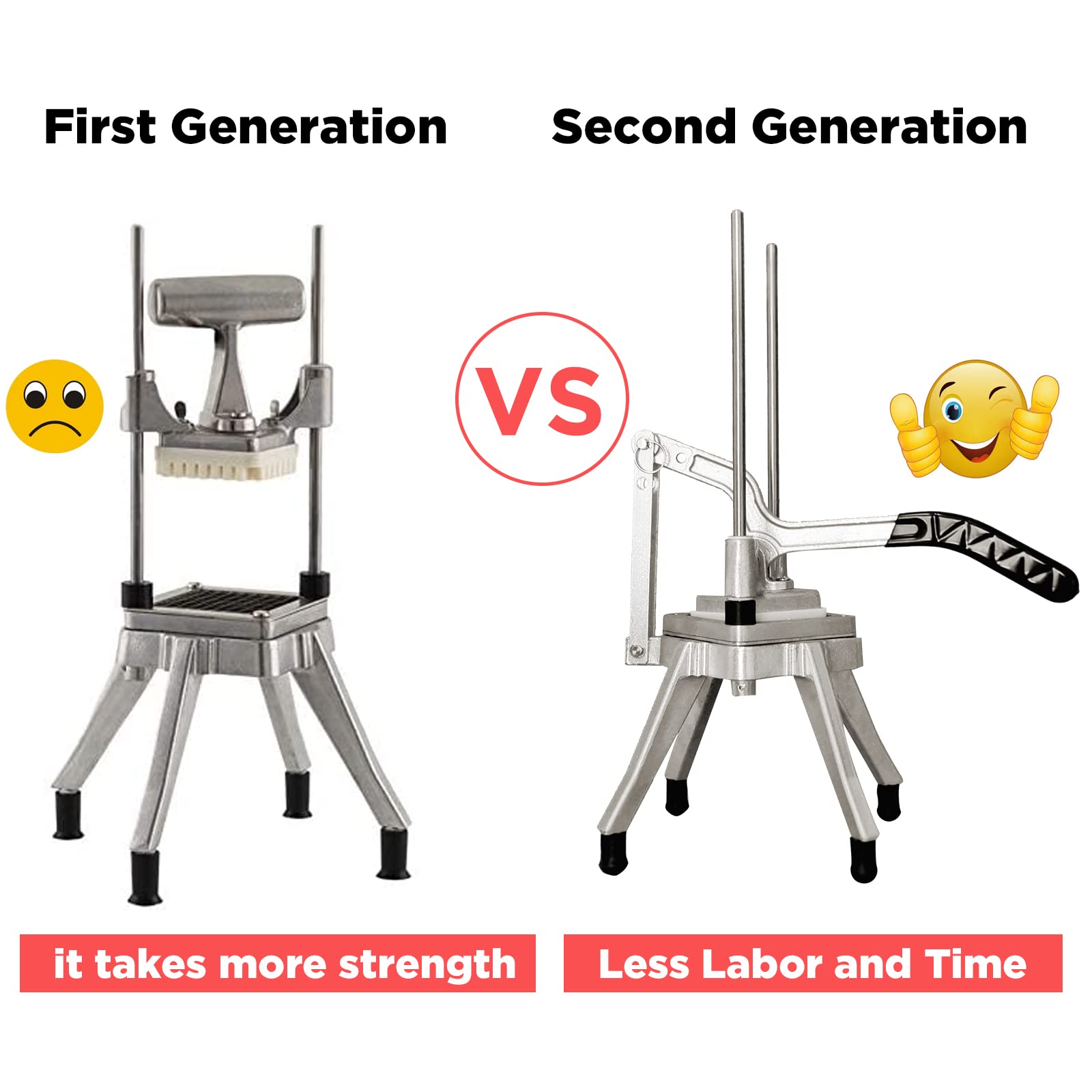 • Ergonomic Handle:The second-generation upgraded version of the Veggie Dicer is more labor-saving than the old one. Unique push-type handle design with higher efficiency can save more time from mechanized work.You can easily press the handle to cut the vegetables and fruits over the sharp blades. It is convenient to prepare French fries and vegetable salads with a commercial chopper without effort.